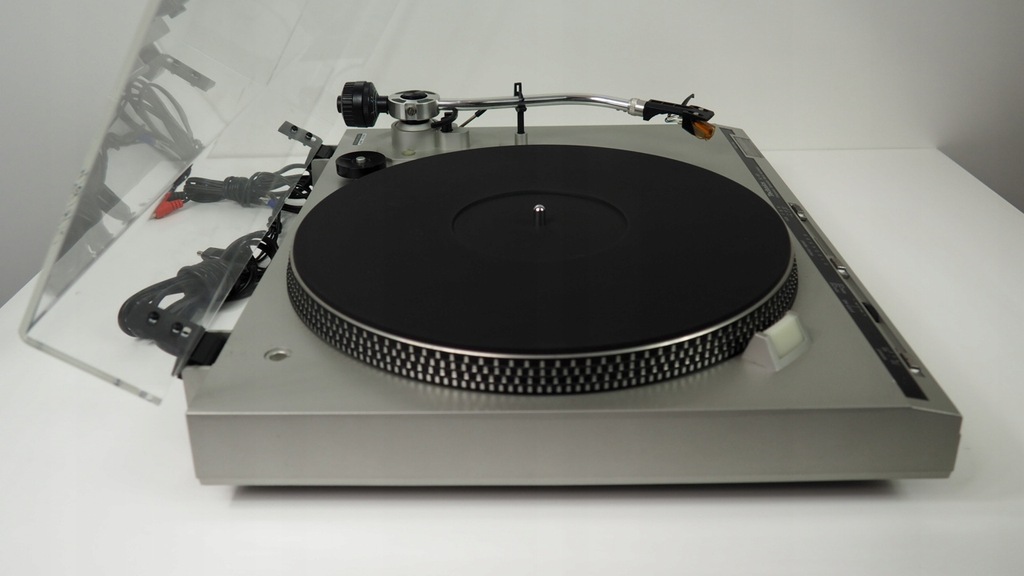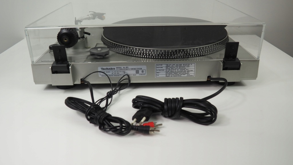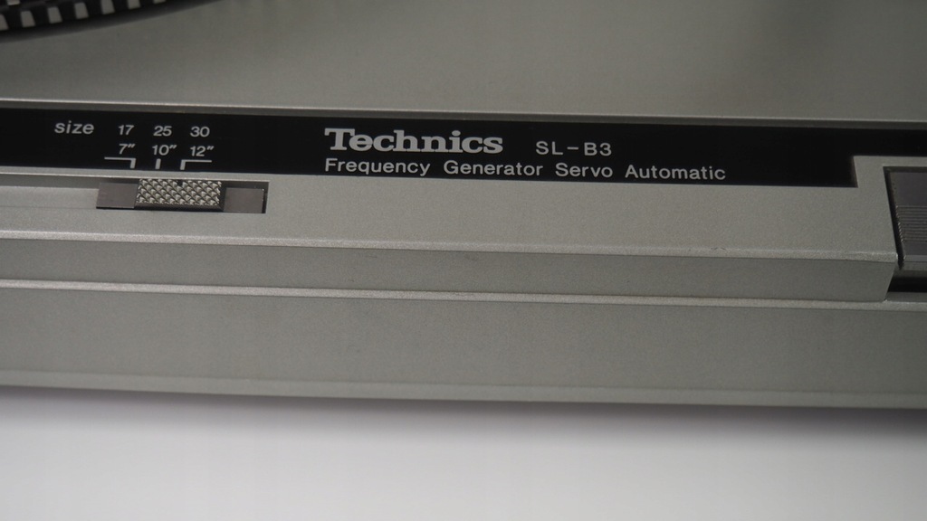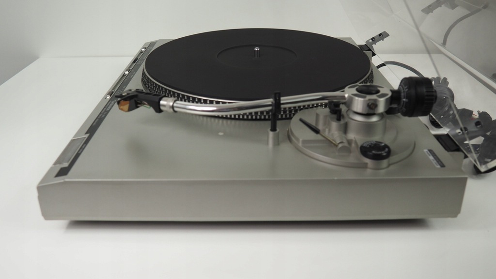 Gramofon Technics SL-B3, kolor srebrny. Stan wizualny jak na zdjęciach. Ta jasna plamka koło ramienia to przetarcie plastiku. Gramofon sprawny, wszystkie funkcje działają.