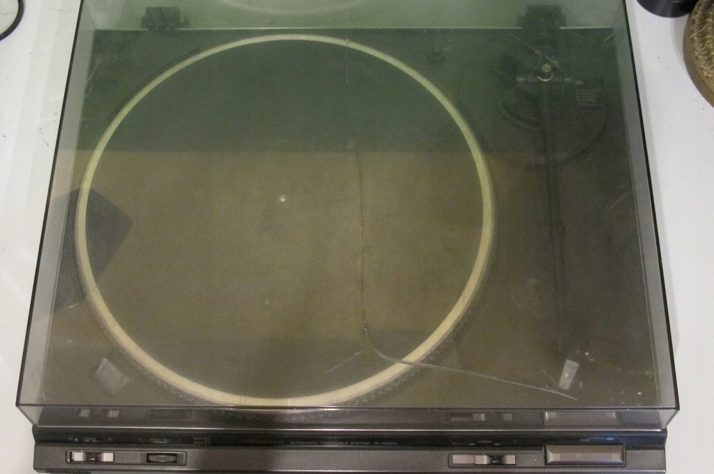 Dobry gramofon paskowy pokrywa pęknięta sklejona , igła do wymiany