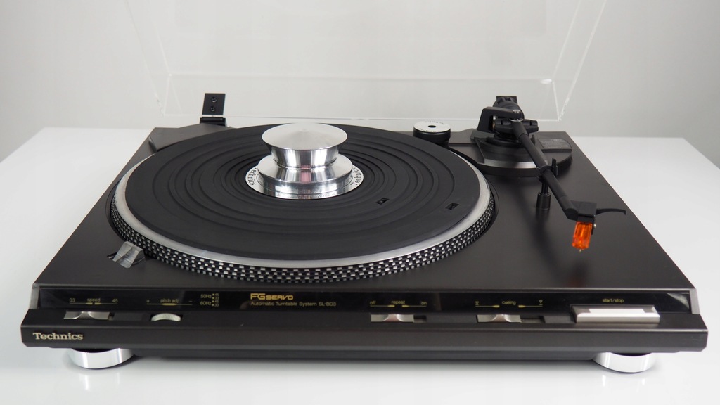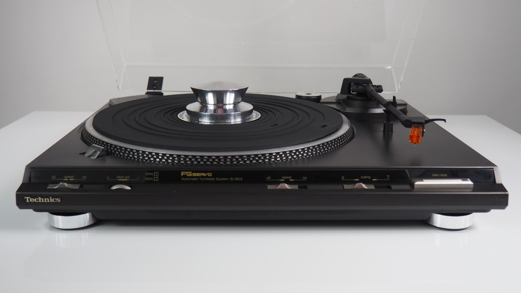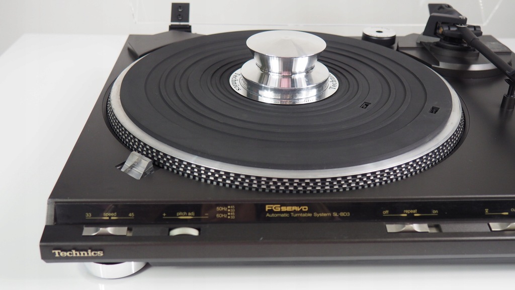 Gramofon Technics SL-BD3. Gramofon po serwisie, nie wymaga żadnego wkładu finansowego. Nowa pokrywa z nowymi aluminiowymi zawiasami. Nowy pasek. Instrukcja i wszystkie kabelki w komplecie. Do gramofonu dodaję docisk, adapter do singli oraz ozdobną blendę na slipmatę.