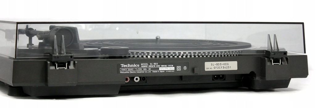 Bardzo zadbany gramofon TECHNICS SL-BD3, model z lat 80-tych Jest to całkowicie automatyczny gramofon z systemem rozpoznawania wielkości płyty i sprawdzonym napędem paskowym z czasów kiedy Technics produkował wszystko w Japonii i nie szedł na żadne kompromisy celem ograniczenia kosztów produkcji. Po wciśnięciu przycisku START ramie samoczynnie ustawia się na początek płyty i powraca na swoje miejsce po zakończeniu strony płyty lub po naciśnięciu przycisku STOP W tym automatycznym gramofonie zastosowano sprawdzone fabrycznie wyważone ramię z fabrycznie ustawionym antyskatingiem. Solidna bardzo mocna i sztywna obudowa. Polecam!