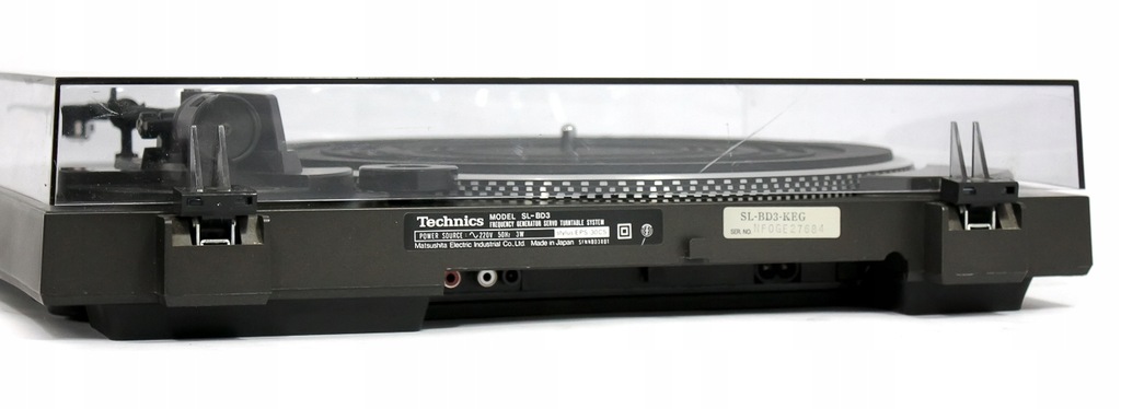 Bardzo zadbany gramofon TECHNICS SL-BD3, model z lat 80-tych Jest to całkowicie automatyczny gramofon z systemem rozpoznawania wielkości płyty i sprawdzonym napędem paskowym z czasów kiedy Technics produkował wszystko w Japonii i nie szedł na żadne kompromisy celem ograniczenia kosztów produkcji. Po wciśnięciu przycisku START ramie samoczynnie ustawia się na początek płyty i powraca na swoje miejsce po zakończeniu strony płyty lub po naciśnięciu przycisku STOP W tym automatycznym gramofonie zastosowano sprawdzone fabrycznie wyważone ramię z fabrycznie ustawionym antyskatingiem. Solidna bardzo mocna i sztywna obudowa. Polecam!