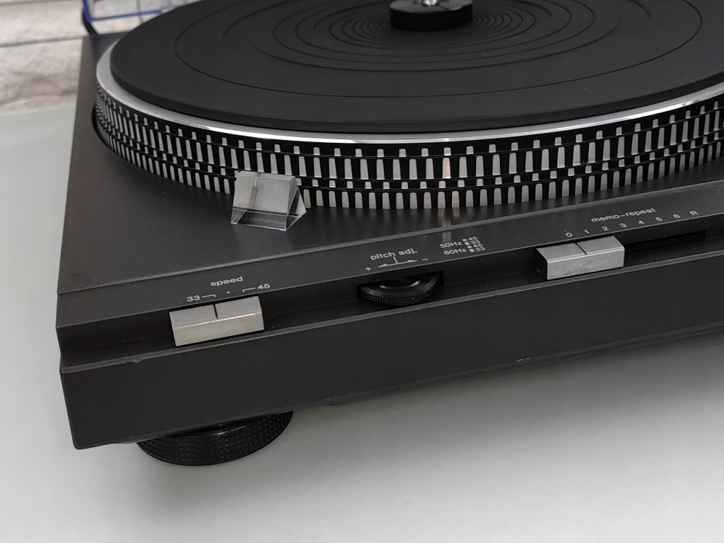 Jest w pełni automatyczny, posiada napęd paskowy Belt Drive, funkcje Repeat i oczywiście regulacje obrotów Pitch.
