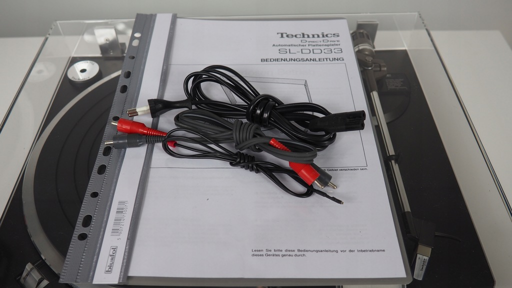 Wszystkie kabelki, instrukcja, docisk, adapter do singli na 45, blenda z logo Technics w komplecie.