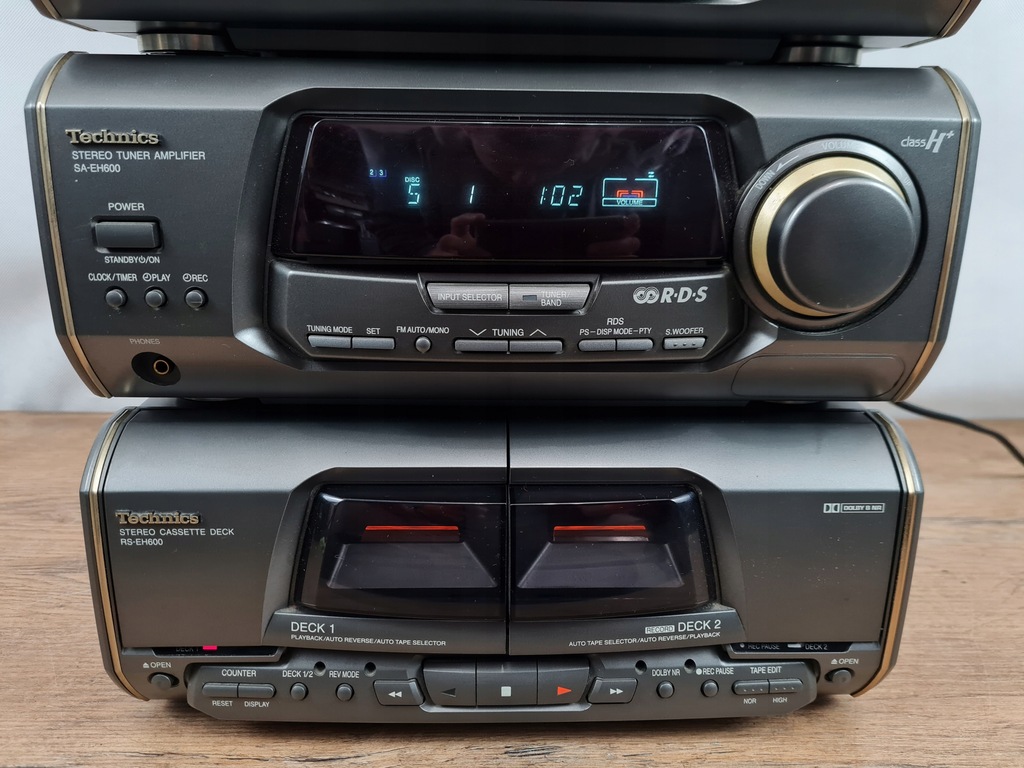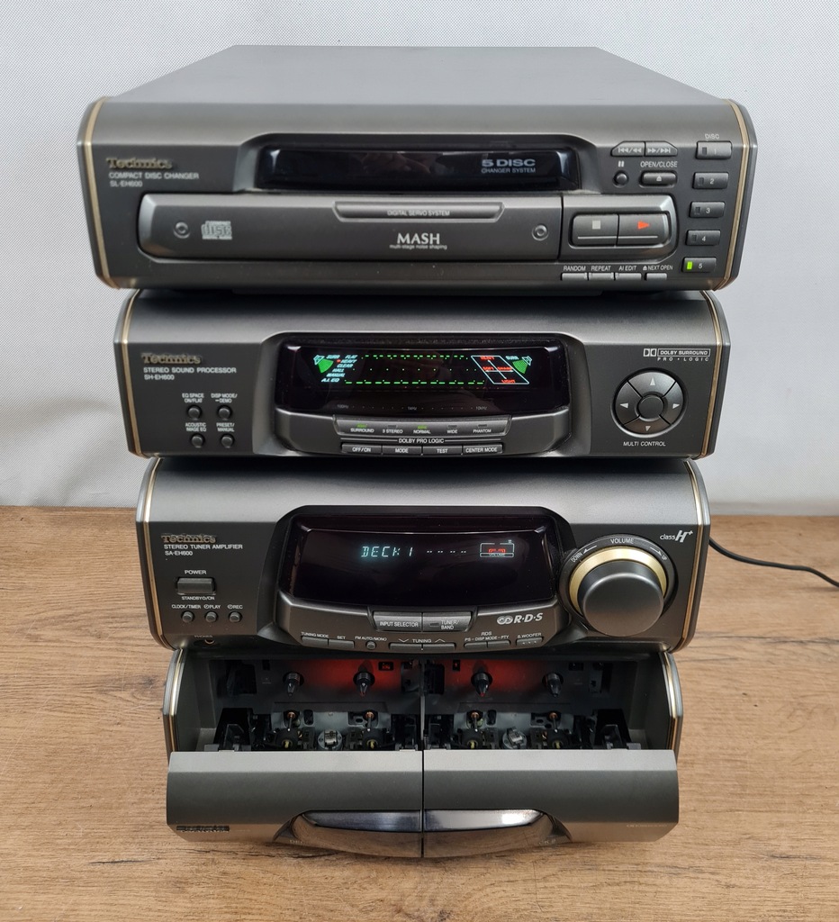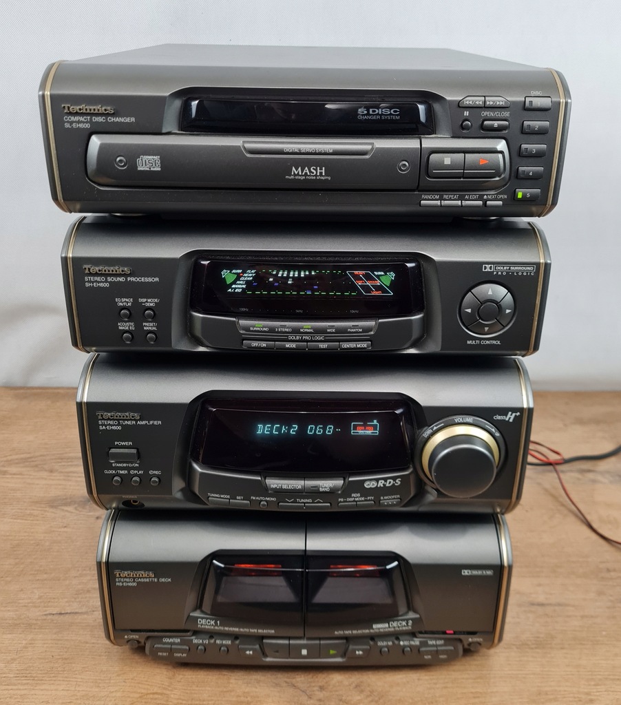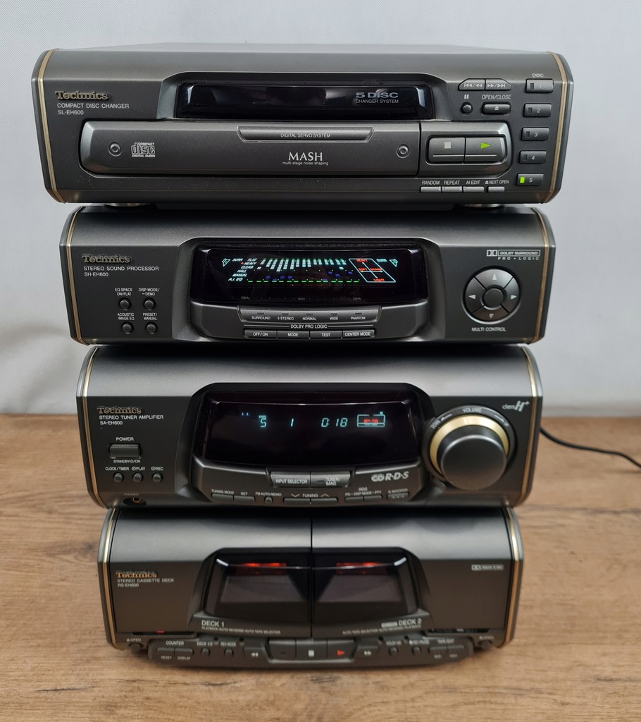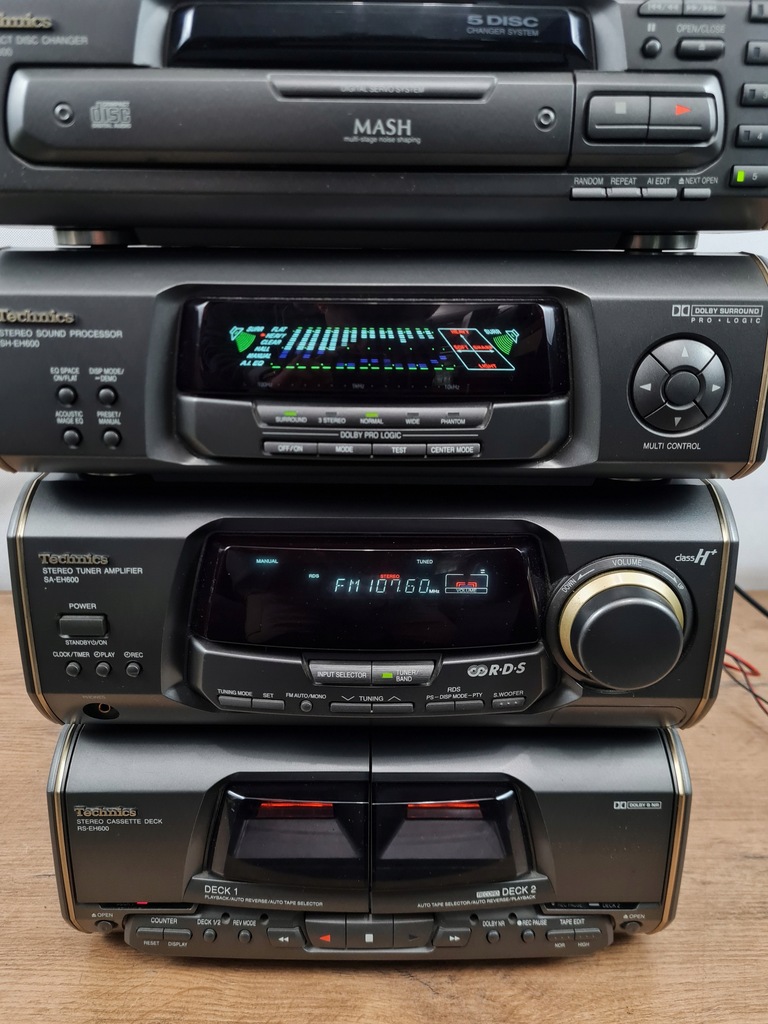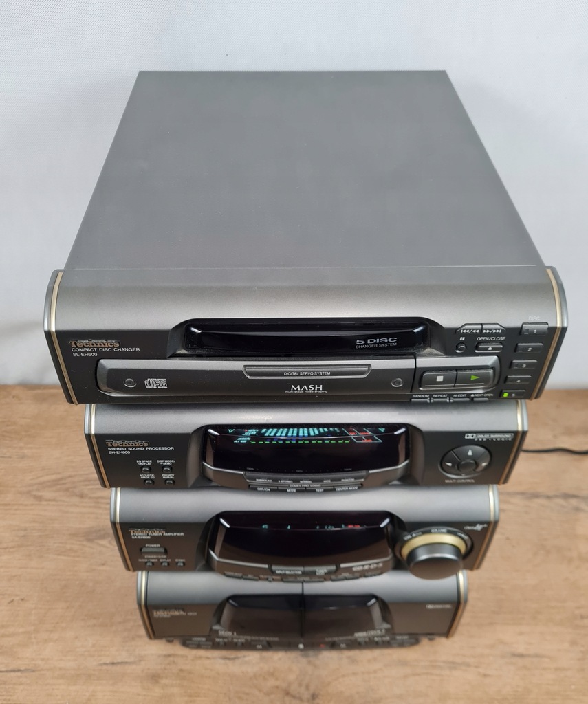 Technics SL-EH600 – odtwarzacz CD / zmieniarka na 5 płyt + procesor dźwięku + amplituner stereo + odtwarzacz kasetowy – wieża stereo.
