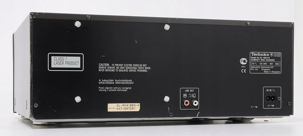 Do zaoferowania mam zmieniarkę na 111 płyt. Jest to w zasadzie szafa grająca. Umieszczone w nie płyty można pogrupować i tworzyć wspaniałe składanki korzystając z mieszania utworów z różnych płyt. Wyposażono ją w oddzielny slot do którego możemy włożyć świeżą płytę i włączyć ją za pomocą jednego przycisku. Odtwarzacz cechuje niezawodność, łatwość obsługi, bardzo dobry dźwięk i atrakcyjny wygląd. Sprzęt świetnie nadaje się do pubów , ale również będzie idealnym rozwiązaniem dla osób które mają duże zbiory płyt lub pragną uzupełnić swój zestaw Technicsa o bardzo atrakcyjne urządzenie. Polecam - satysfakcja gwarantowana.
