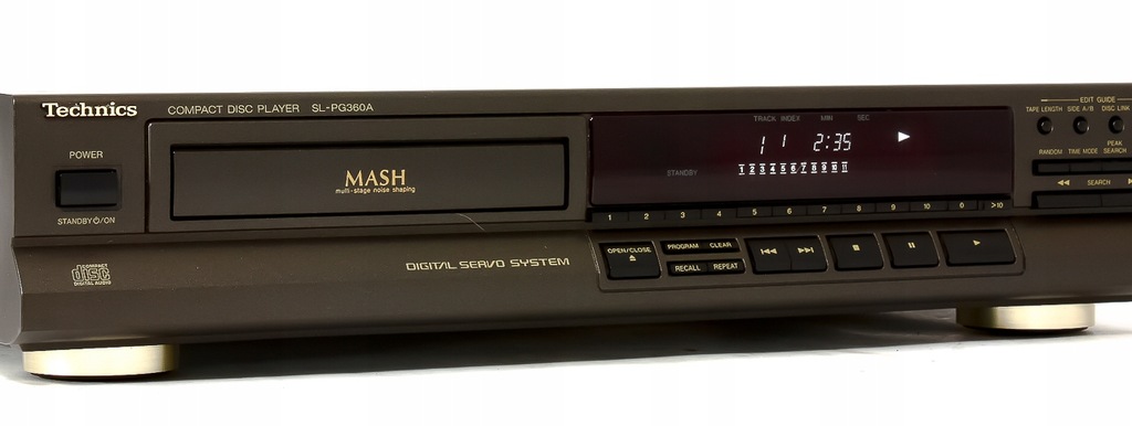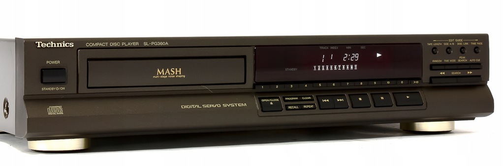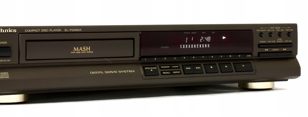 Technics SL-PG360A prezentuje dynamiczne i zwarte brzmienie, dobry napęd bardzo szybko wczytuje krążki CD, zarówno mało oryginalne jak i nagrywane. Laser pracuje prawidłowo, nie przeskakuje i bez zająknięcia czyta wszystkie CD. CD player wyposażony jest w precyzyjny układ scalony zawierający 1-bitowy przetwornik cyfrowo-analogowy MASH i zaawansowaną cyfrowe serwo zapewniające wysoką jakość dźwięku. Odtwarzacz jest bardzo solidnie wykonany, wysokiej klasy elementy, rzeczowy wyświetlacz oraz czytelny panel przedni. Sprzęt wykonany z użyciem najlepszych, materiałów i technologii, z wręcz drobiazgową dbałością o szczegóły. Należące do tej firmy komponenty Hi-fi to urządzenia wyjątkowe, przeznaczone dla wymagających odbiorców.Przynależność do rodziny Technics jest swoistą gwarancją reprodukcji dźwięku na najwyższym poziomie.