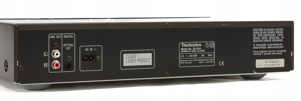 Bardzo dobry model odtwarzacza Technics’a, o wysokiej jakości dźwięku. Odtwarzacz został zbudowany na jedno bitowym przetworniku typu MASH - był on niegdyś stosowany w sprzęcie najwyższej klasy. Sprzęt ma bardzo dobre parametry techniczne. Charakteryzuje się naprawdę świetnym dźwiękiem o wysokiej dynamice. Wyposażony w niezbędne funkcje. Posiada: regulowane wejście na słuchawki, wyjścia: rca i digital. Technicznie sprawny, odtwarza nagrywane płyty cdr.