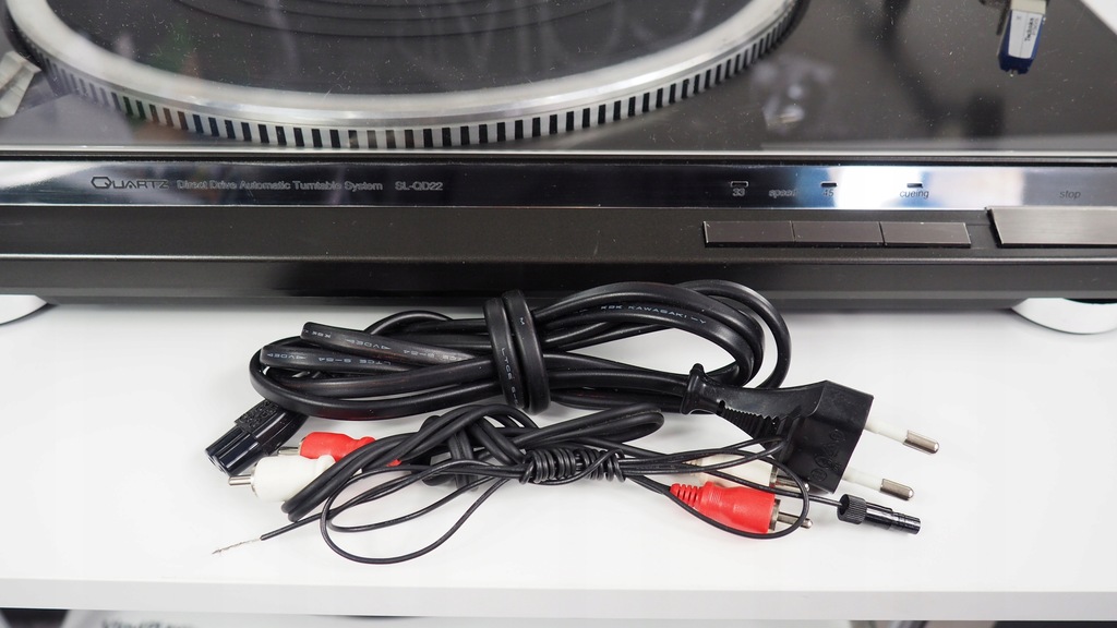 Wszystkie kabelki, docisk, adapter do singli na 45, blenda z logo Technics w komplecie.