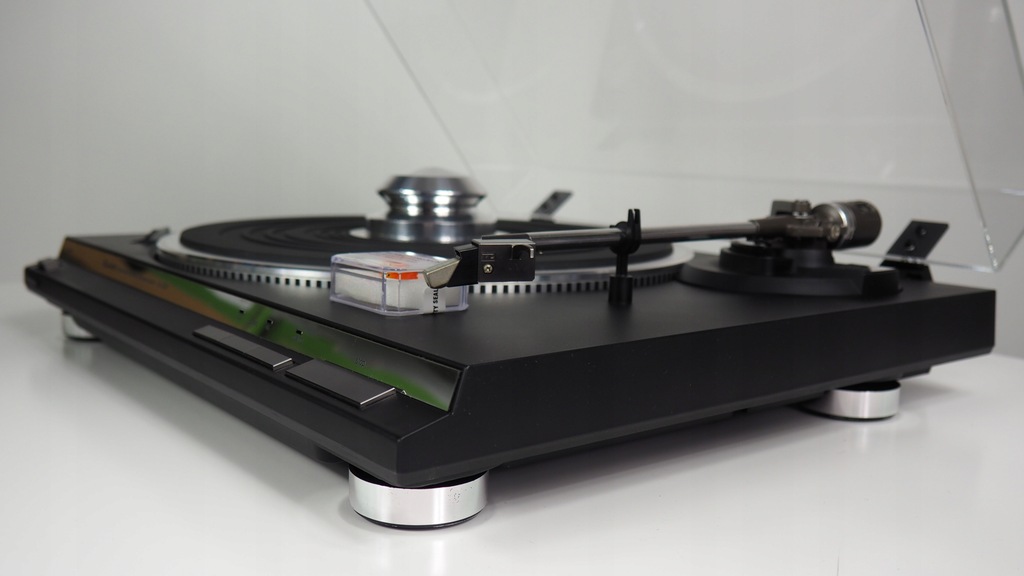 Gramofon Technics SL-QD22. Gramofon po serwisie, nie wymaga żadnego wkładu finansowego. Stan optyczny jak nowy. Gramofon po kompletnej renowacji, została odnowiona i pomalowana na czarno cała plinta. Nowa blenda z przodu gramofonu w kolorze srebrnym lustrzanym.