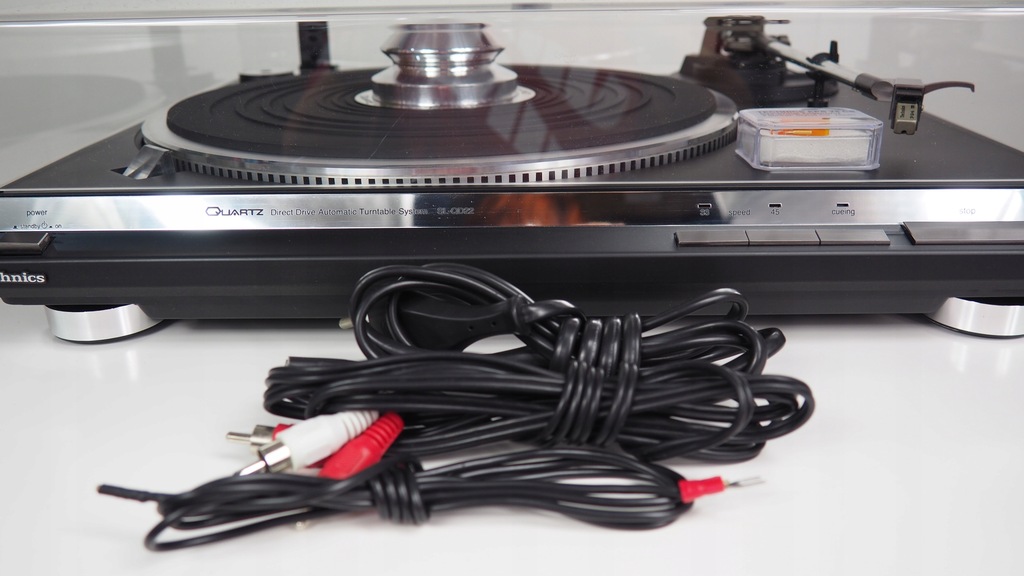 Wszystkie kabelki, docisk, adapter do singli na 45, blenda z logo Technics w komplecie.