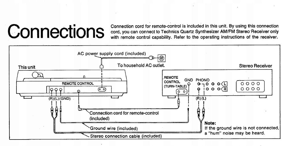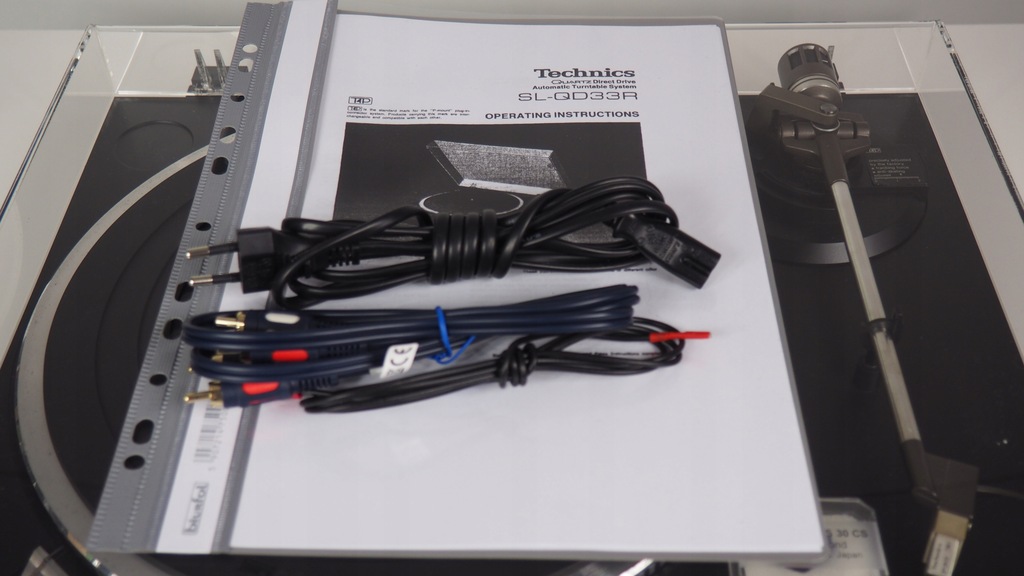 Wszystkie kabelki (oprócz kabelka do sterowania z pilota), docisk, adapter do singli na 45, blenda z logo Technics, instrukcja w komplecie.
