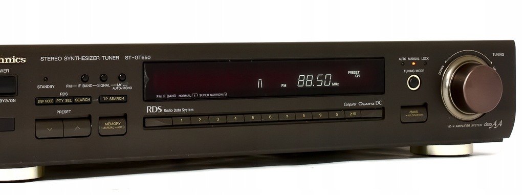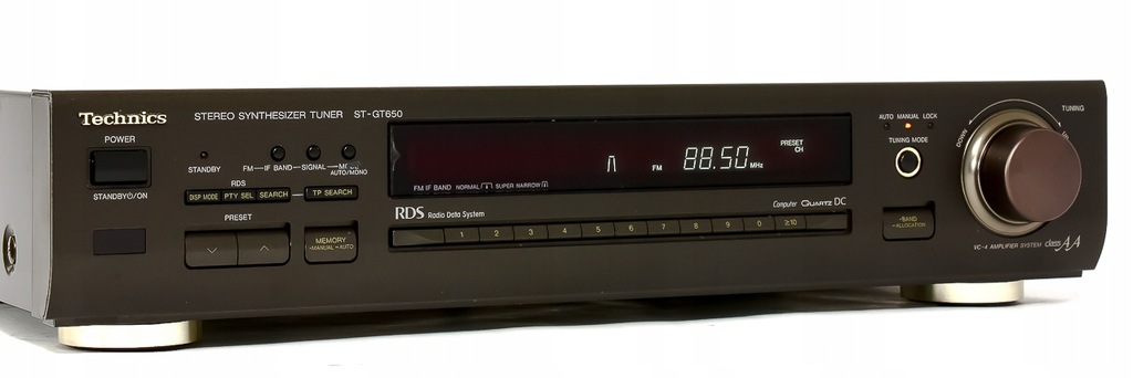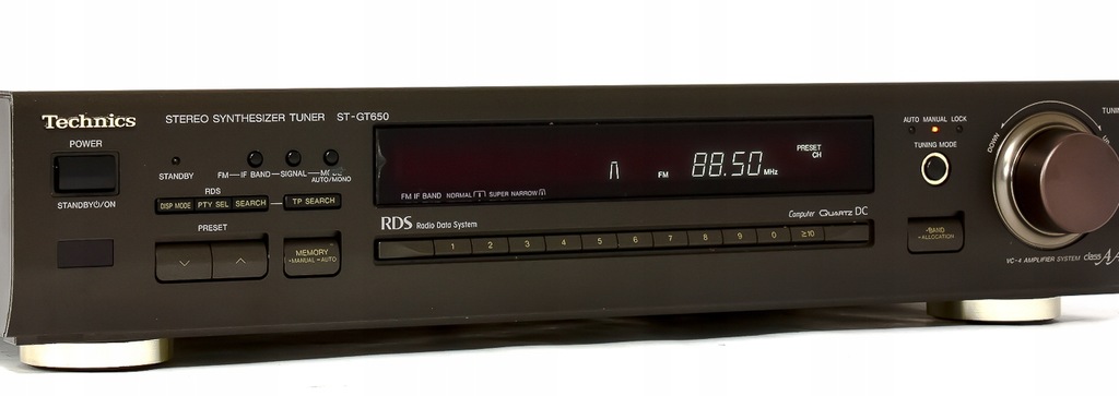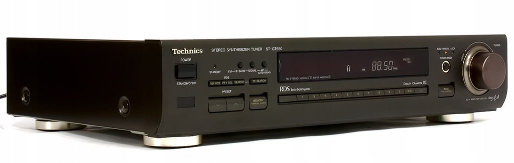 Do sprzedania mam tunera Technics'a . Tuner ST-GT650 jest szczytowym modelem pośród tunerów cyfrowych firmy Technics. Tunerek pracuje w klasie AA, jest wykonany z aluminium. Sprzęt doskonale znany z rodzimych sklepów RTV – był bardzo drogi dlatego niektórzy dopiero dziś decydują się na zakup tego flagowca wśród tunerów Technics. Sprzęt utrzymany w bardzo dobrym stanie, oczywiście przednia ścianka z aluminium malowanego proszkowo. Klasa sama w sobie . Rzecz jasna tuner pochodzi z Japońskiej wytwórni. Tuner w 100% sprawny, bezproblemowo odbiera wszystkie dostępne stacje radiowe, tryb stereo oraz RDS chodzą bez zarzutu. Charakteryzuje się bardzo ładnym wyglądem, pasującym do pozostałych klocków Technicsa. Osobom które znają ten sprzęt nie muszę go zachwalać, a tym którzy nie mieli z nim styczności obiecuję że będą bardziej niż zadowoleni po jego nabyciu. Polecam!!!