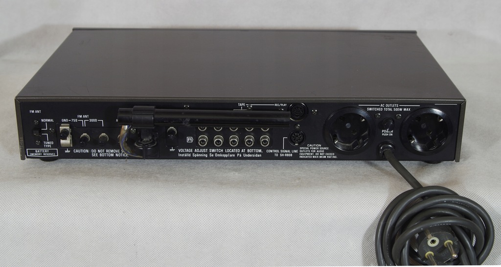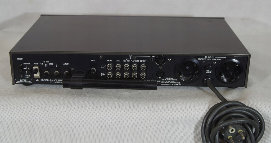 Wyposażony w trzy wejścia audio rca: Phono (gramofonowe), aux, tape. Możliwość podłączenia 4 kolumn (dwóch par).