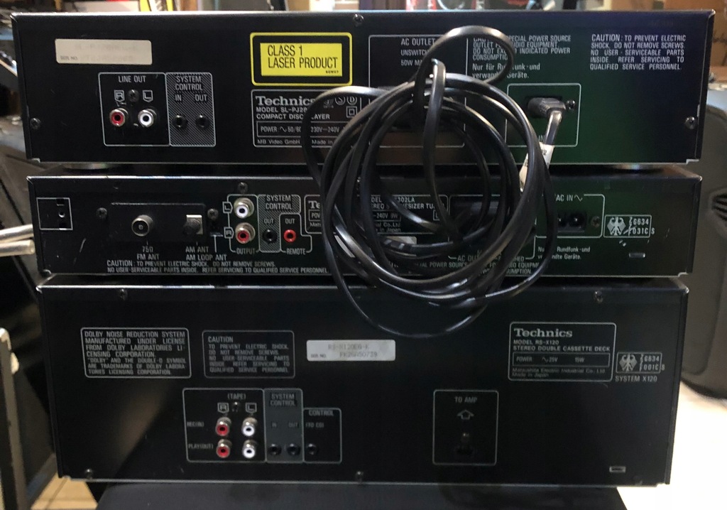 Na sprzedaż zestaw 3 klocków Technicsa - ST-X302L (tuner) + RS-X120 (podwójny odtwarzacz kasetowy) + SL-PU28A (compact disc).