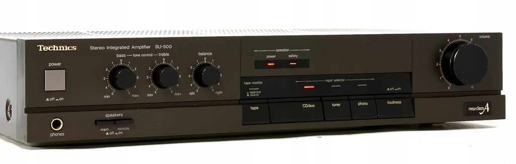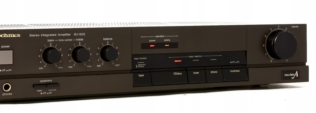 Wzmacniacz ten jest jednym z mocniejszych stworzonych przez Technics'a pracujący w klasie A. Jego pobór mocy to 250 watt. Dzięki budowie w klasie A - całkowitym poborze mocy 250W, wielkiemu trafo oraz przyzwoitym kondensatorom 2 x 0,47 farada wzmacniacz jest stabilny, dźwięk nie znikształcony a basy czyste, można "napędzić" spore kolumny. Posiada możliwość podłączenia 2 par kolumn, para MAIN lub REMOTE (4-16Ohm) bądź MAIN+REMOTE (8-16Ohm). Posiada regulację bass, treble, balans oraz funkcję podbicia tonów Loudness, Tape Source (Tape/ext), załączenie/odłączanie par kolumn MAIN i REMOTE (np. gdy chcemy słuchać muzyki tylko na słuchawkach). Posiada wejścia na 4 urządzenia oraz gniazdo słuchawkowe. Wzmacniacz to prawdziwy japończyk (na japońskich podzespołach) jakich dziś się już nie produkuje! Polecam!