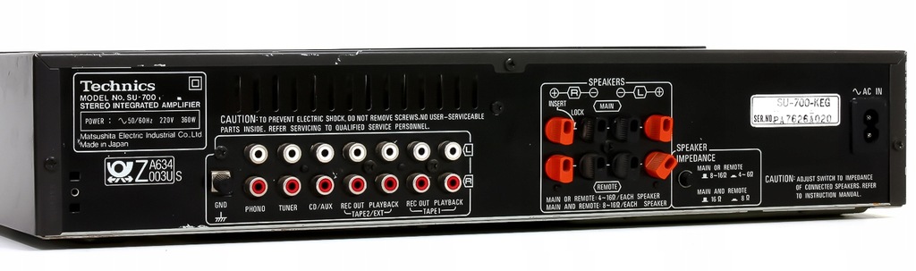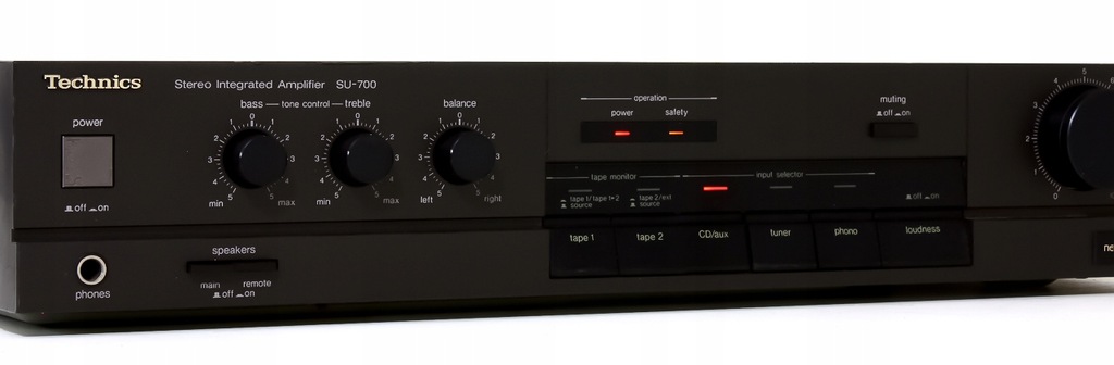 Witam, do zaoferowania posiadam wzmacniacz firmy TECHNICS model SU-700. Doskonały stosunek jakości do ceny. Sprzęt bardzo udany konstrukcyjnie i mocny. Bardzo dobry wzmacniacz stworzony przez lidera rynku audio w złotych latach Technics'a pracujący w klasie A. Wzmacniacz pracuje stabilnie, tzn. kondensatory zapewniają zapas mocy przy mocnych uderzeniach basu, dzięki temu nie ma efektu jego załamania nawet przy głośnym odsłuchu! Wzmacniacz wyprodukowany został na japońskich podzespołach co gwarantuje jego wieloletnią bezawaryjność - takich konstrukcji już dziś się już nie produkuje!