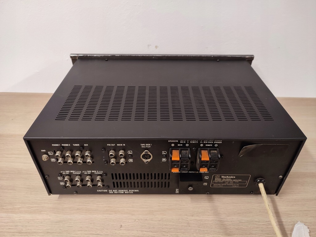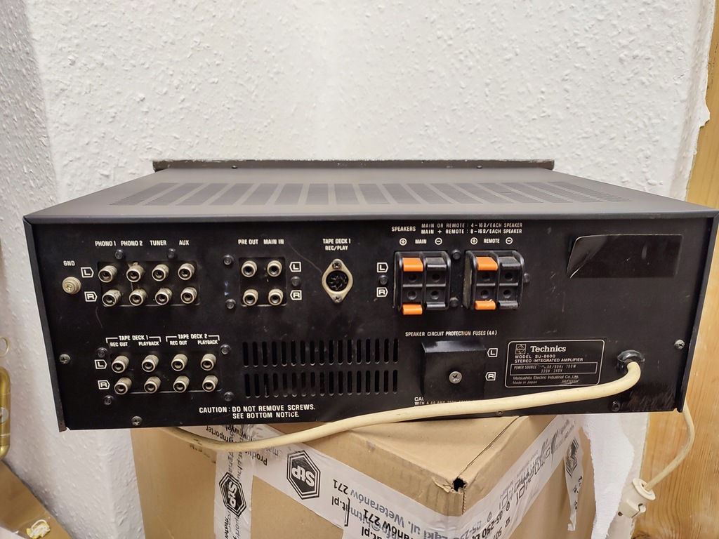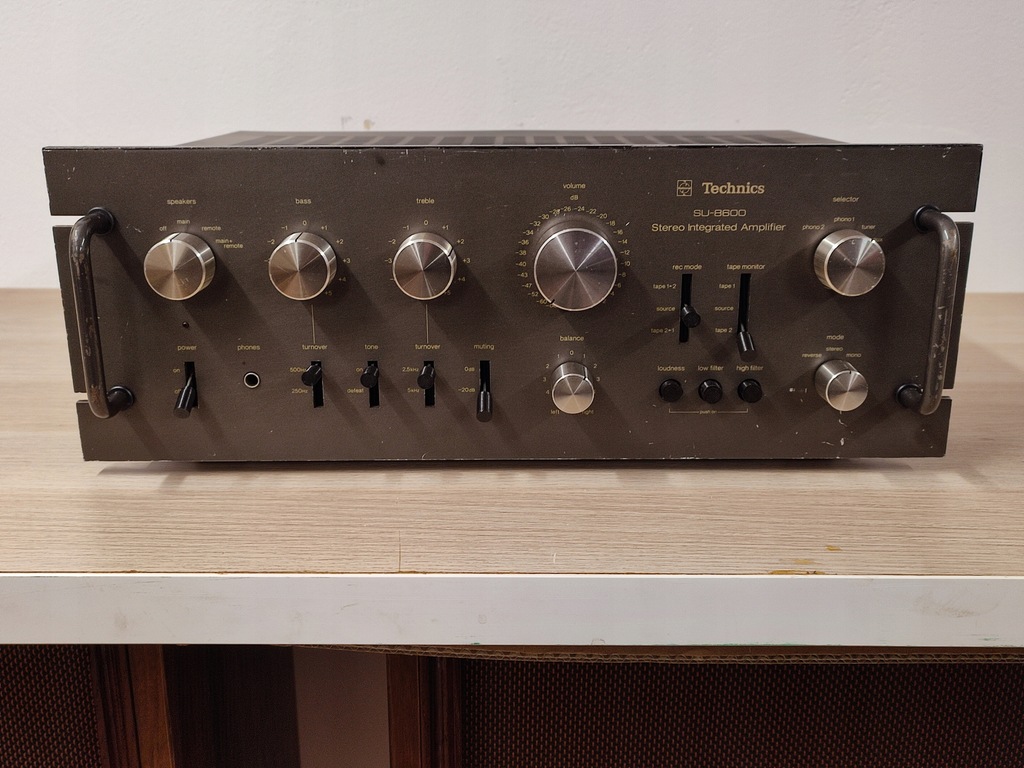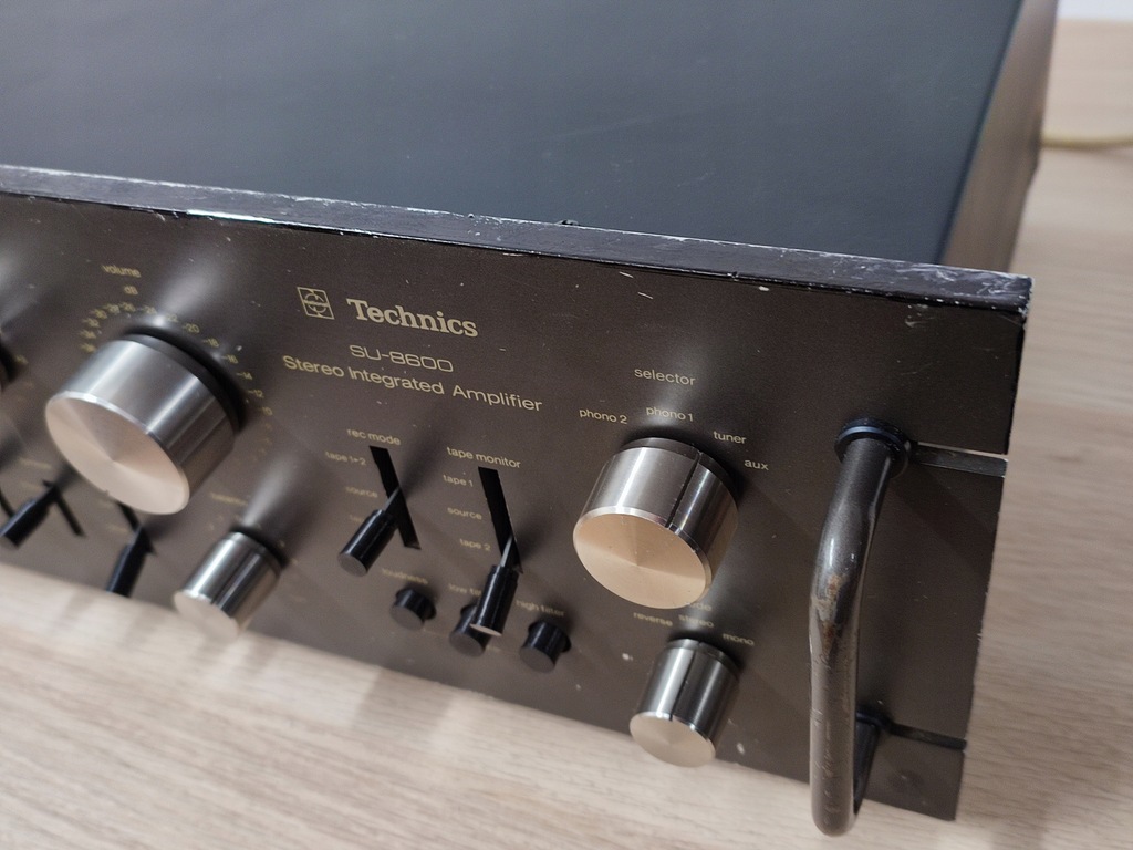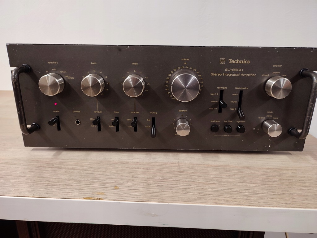 Wzmacniacz w pełni sprawy, legendarny wzmacniacz Technics SU-8600,który dodatkowo przeszedł przegląd w specjalistycznym warsztacie , co w sprzęcie prawie 50-letnim jest koniecznością. Warto fakt przeglądu rozważając zakup brać pod uwagę , ponieważ jest to dość spory wydatek i trudno znaleźć dobrego fachowca , który jeszcze znajdzie czas.