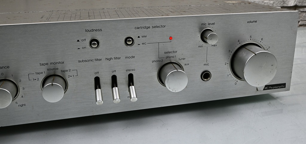 Input sensitivity: 4mV (mic), 0.07mV (MC), 2.5mV (MM), 150mV (line)