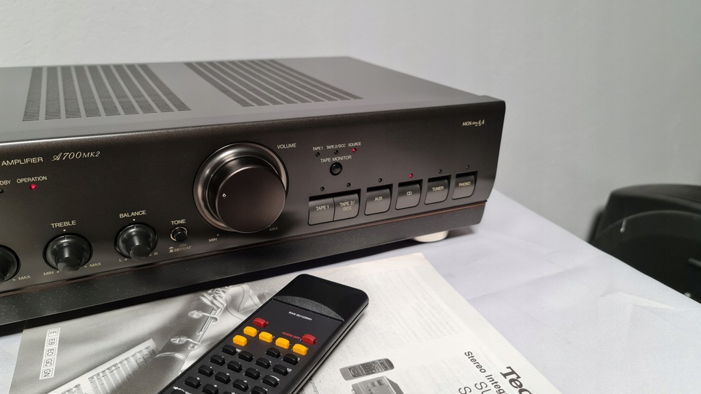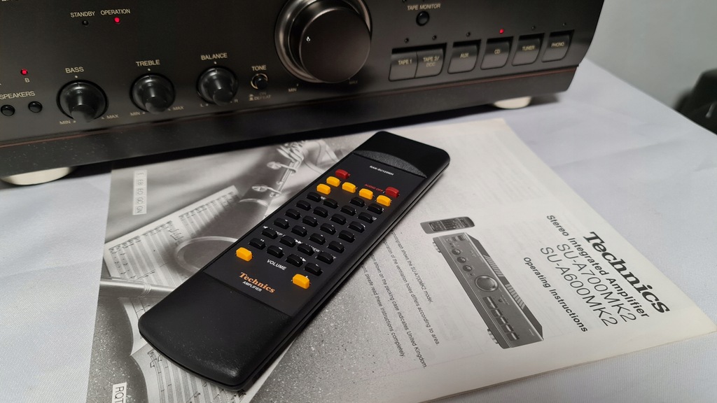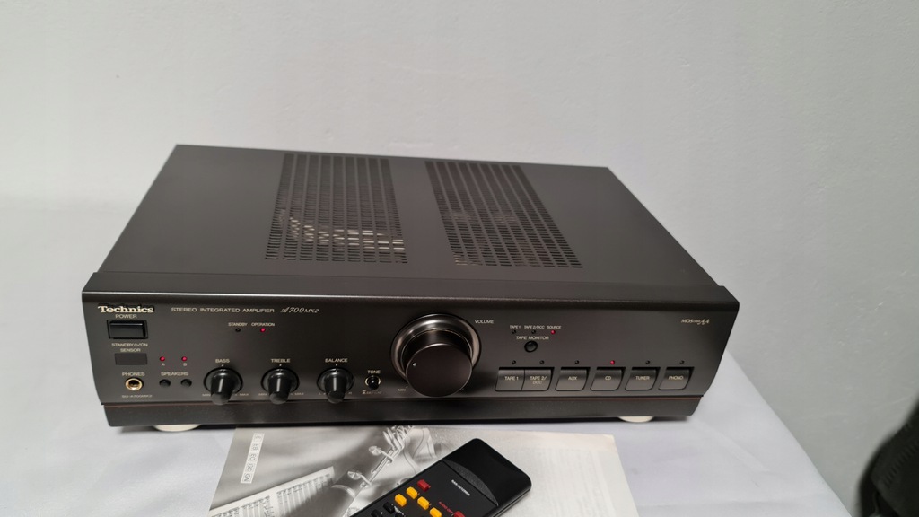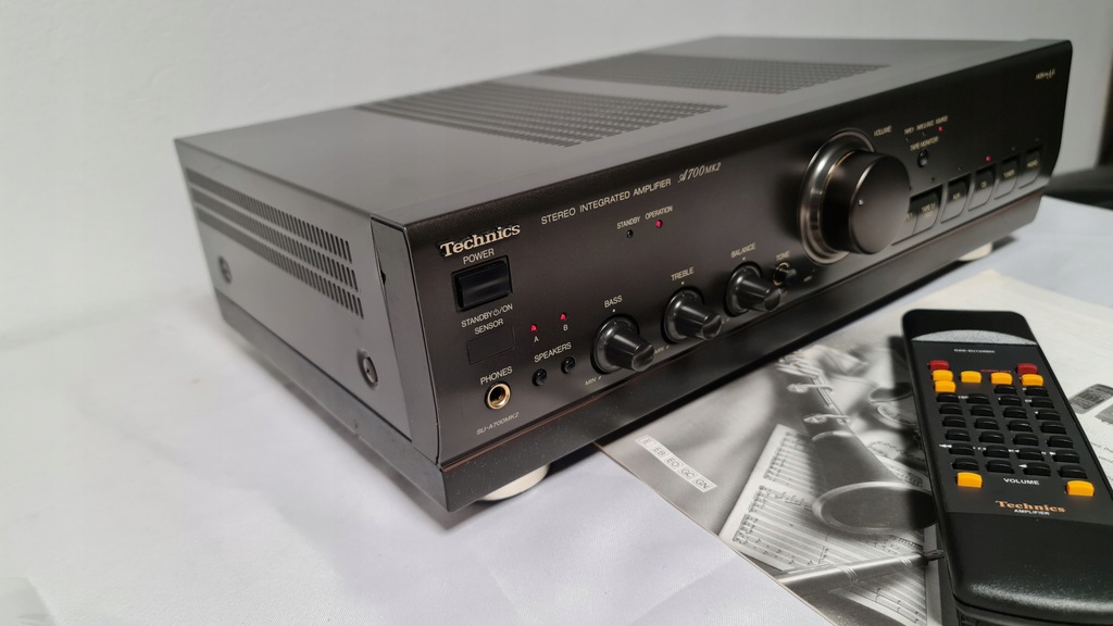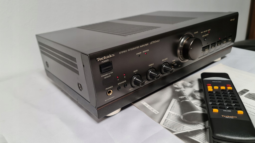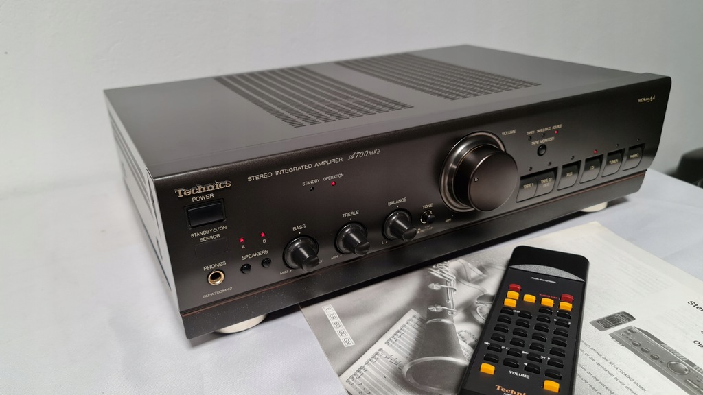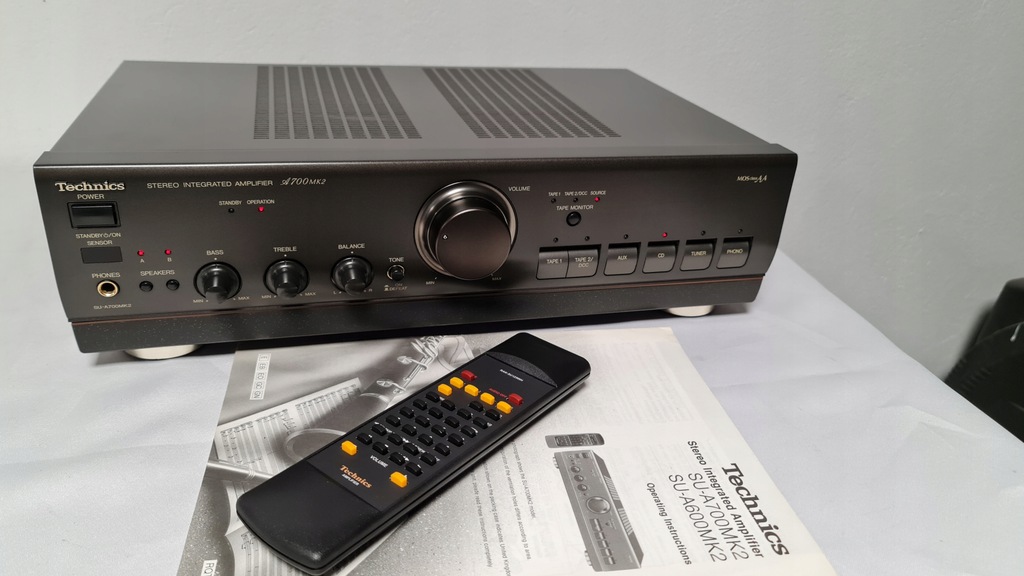 Mam dziś na sprzedaż bardzo udany model wzmacniacza Technics SU-A700MK2. Sprzęt w takim stanie wizualnym jak na zdjęciach, technicznie 100% sprawny i oryginalny. W zestawie oryginalna instrukcja , pilot zamienny nowy odpowiadający funkcjami oryginału , kabel zasilający. Panel frontowy jak nowy .