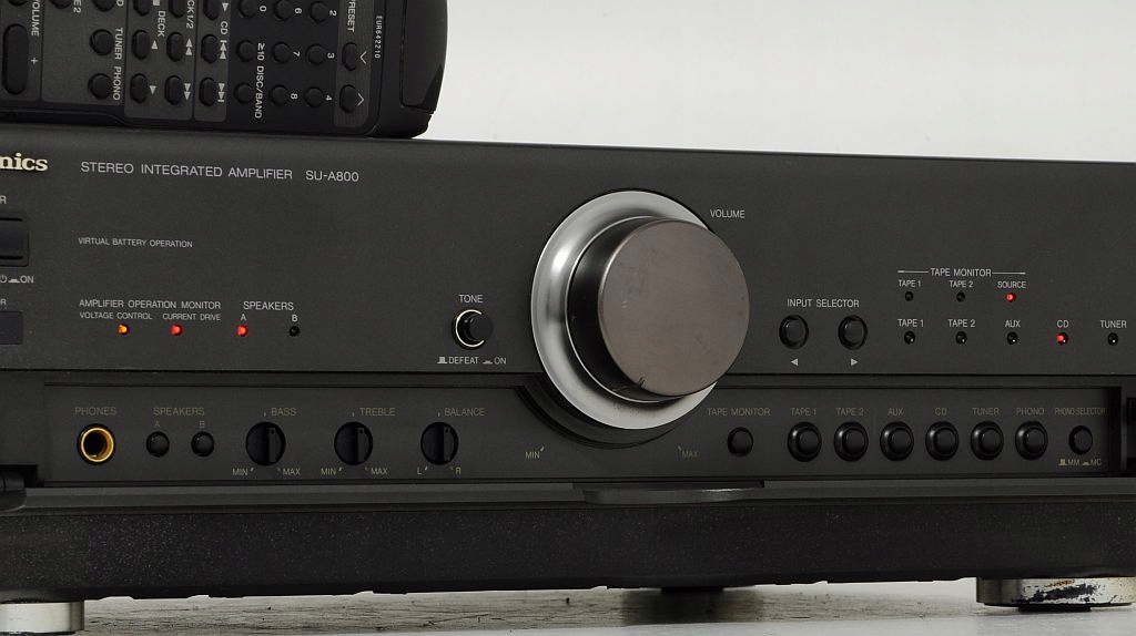 Posłuchajcie Państwo tego sprzętu a namacalnie odczujecie doskonałość technicznych rozwiązań firmy Technics. Dowodem ich poważnego traktowania muzyki może być ten oto wzmacniacz SU-A800 w którym oryginalny i zaawansowany technicznie układ MOS klasy AA zapewnia niedoścignioną liniowość charakterystyk i wyjątkową jakość dźwięku.