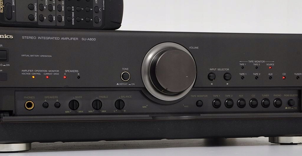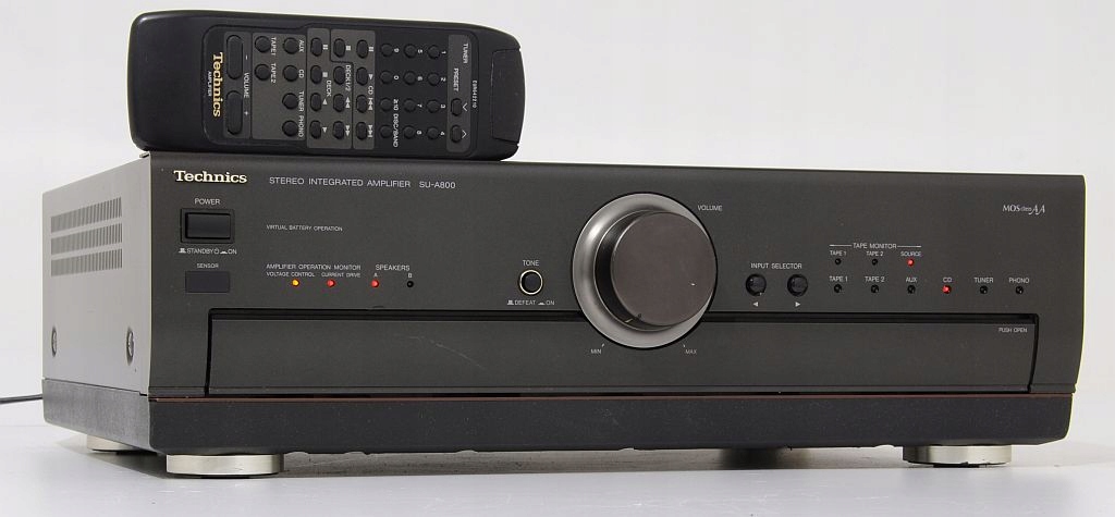 Posłuchajcie Państwo tego sprzętu a namacalnie odczujecie doskonałość technicznych rozwiązań firmy Technics. Dowodem ich poważnego traktowania muzyki może być ten oto wzmacniacz SU-A800 w którym oryginalny i zaawansowany technicznie układ MOS klasy AA zapewnia niedoścignioną liniowość charakterystyk i wyjątkową jakość dźwięku.