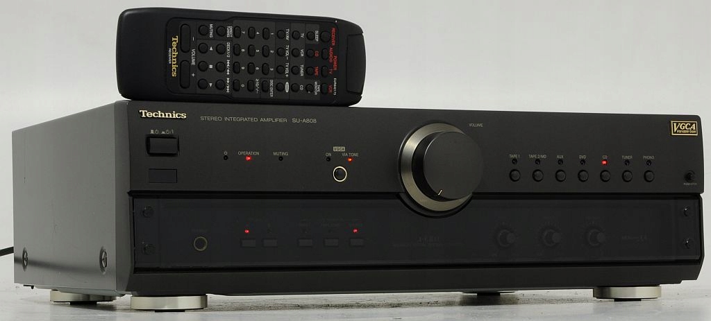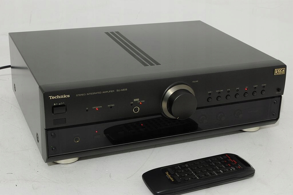 Posłuchajcie Państwo tego sprzętu a namacalnie odczujecie doskonałość technicznych rozwiązań firmy Technics. Dowodem ich poważnego traktowania muzyki może być ten oto wzmacniacz SU-A808 w którym oryginalny i zaawansowany technicznie układ MOS klasy AA zapewnia niedoścignioną liniowość charakterystyk i wyjątkową jakość dźwięku. Porównywanie oferowanego tu modelu do niższych modeli Technics`a to wręcz profanacja – zapraszam na konfrontację, można się przekonać… Brzmienie – rewelacja – w dobie obecnie produkowanych wzmacniaczy budżetowych, należałoby nadać mu miano "z wyższej półki" – dynamika stereofonia wręcz nie pasują do marki Technics. Moim zdaniem parametry jakie oferuje SU-A808 powinny stanowić standard dla obecnych sklepowych produktów w przedziale 1500-2000zł, niestety z przyczyn marketingowych jest to niemożliwe (zresztą od wielu już lat). Urządzenie wykonane z wysokiej jakości, firmowych, trwałych komponentów, między innymi: potężna końcówka mocy, świetne zabezpieczenia chroniące ją przed zwarciami, sprzężeniami...), firmowany transformator. Należy również wspomnieć o potencjometrach ALPS, które są w doskonałej kondycji (brak trzasków, szelestów podczas regulacji). Urządzenie w 100% sprawne, w 100% oryginalne bez napraw, oczywiście przy odbiorze osobistym można dokonać stosownej inspekcji