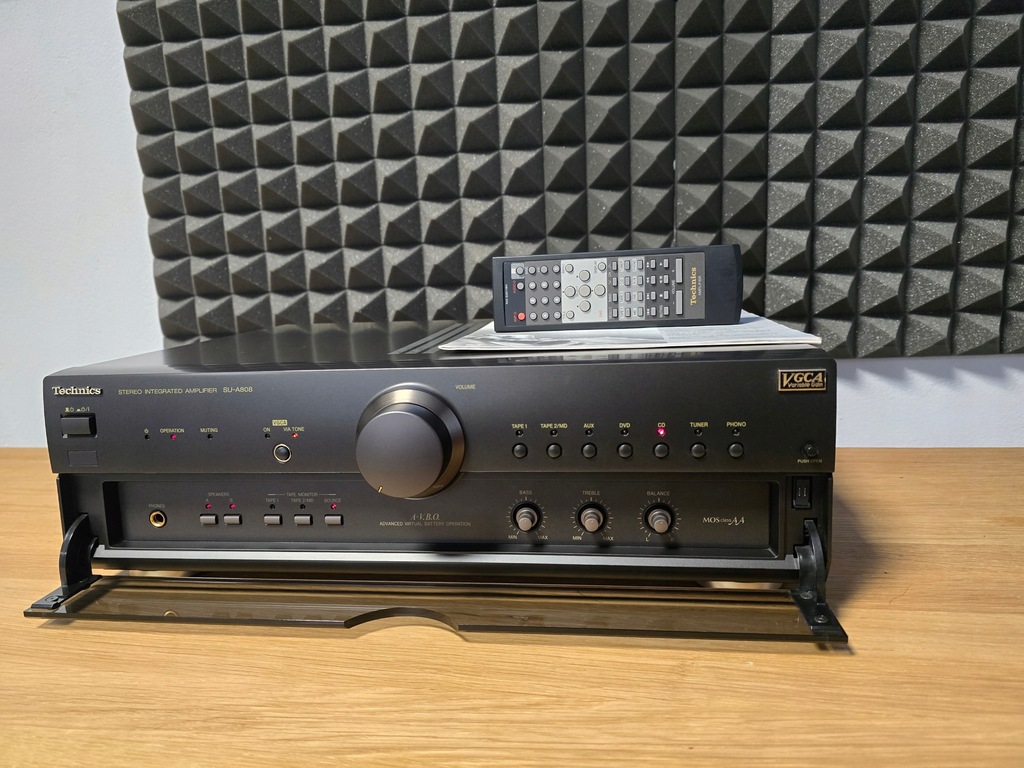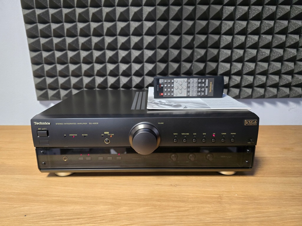 NA SPRZEDAŻ TOPOWY WZMACNIACZ TECHNICS SU-A808 W SUPER STANIE WIZUALNYM JAK I TECHNICZNYM 100% ORYGINALNY JAK NOWY. W ZESTAWIE ORYGINALNY DEDYKOWANY PILOT, ORYGINALNA INSTRUKCJA OBSŁUGI I KABEL ZASILAJĄCY. PRAWDZIWY UNIKAT