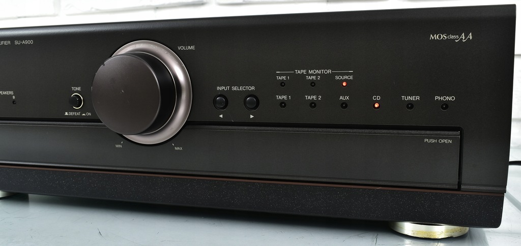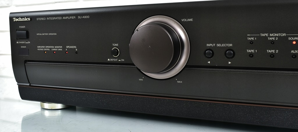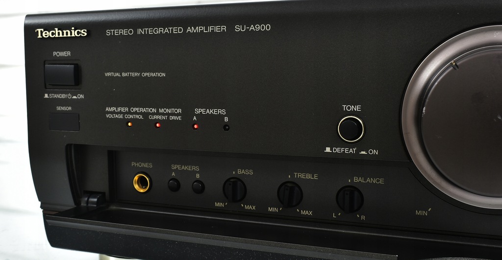 Posłuchajcie Państwo tego sprzętu a namacalnie odczujecie doskonałość technicznych rozwiązań firmy Technics. Dowodem ich poważnego traktowania muzyki może być ten oto wzmacniacz SU-A900 w którym oryginalny i zaawansowany technicznie układ MOS klasy AA zapewnia niedoścignioną liniowość charakterystyk i wyjątkową jakość dźwięku. Porównywanie oferowanego tu modelu do niższych modeli Technics`a to wręcz profanacja – zapraszam na konfrontację, można się przekonać… Brzmienie – rewelacja – w dobie obecnie produkowanych wzmacniaczy budżetowych, należałoby nadać mu miano audiofilskiego – dynamika stereofonia wręcz nie pasują do marki Technics. Moim zdaniem parametry jakie oferuje SU-A900 powinny stanowić standard dla obecnych sklepowych produktów w przedziale 2000-2500zł, niestety z przyczyn marketingowych jest to niemożliwe (zresztą od wielu już lat). Urządzenie wykonane z wysokiej jakości, firmowych, trwałych komponentów, między innymi: potężna końcówka mocy, świetne zabezpieczenia chroniące ją przed zwarciami, sprzężeniami...), firmowany transformator. Należy również wspomnieć o potencjometrach ALPS, które są w doskonałej kondycji (brak trzasków, szelestów podczas regulacji). Urządzenie w 100% sprawne, w 100% oryginalne bez napraw, oczywiście przy odbiorze osobistym można dokonać stosownej inspekcji