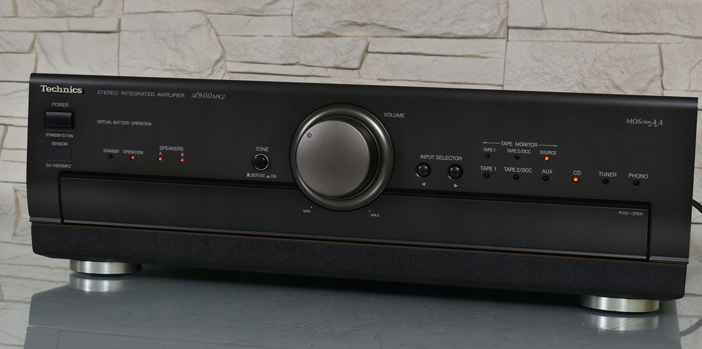 Posłuchajcie Państwo tego sprzętu a namacalnie odczujecie doskonałość technicznych rozwiązań firmy Technics. Dowodem ich poważnego traktowania muzyki może być ten oto wzmacniacz SU-A900MK2 w którym oryginalny i zaawansowany technicznie układ MOS klasy AA zapewnia niedoścignioną liniowość charakterystyk i wyjątkową jakość dźwięku. Porównywanie oferowanego tu modelu do niższych modeli Technics`a to wręcz profanacja – zapraszam na konfrontację, można się przekonać… Brzmienie – rewelacja – w dobie obecnie produkowanych wzmacniaczy budżetowych, należałoby nadać mu miano audiofilskiego – dynamika stereofonia wręcz nie pasują do marki Technics. Moim zdaniem parametry jakie oferuje SU-A900MK2 powinny stanowić standard dla obecnych sklepowych produktów w przedziale 2000-2500zł, niestety z przyczyn marketingowych jest to niemożliwe (zresztą od wielu już lat). Urządzenie wykonane z wysokiej jakości, firmowych, trwałych komponentów, między innymi: potężna końcówka mocy, świetne zabezpieczenia chroniące ją przed zwarciami, sprzężeniami...), firmowany transformator. Należy również wspomnieć o potencjometrach ALPS, które są w doskonałej kondycji (brak trzasków, szelestów podczas regulacji). Urządzenie w 100% sprawne, w 100% oryginalne bez napraw, oczywiście przy odbiorze osobistym można dokonać stosownej inspekcji