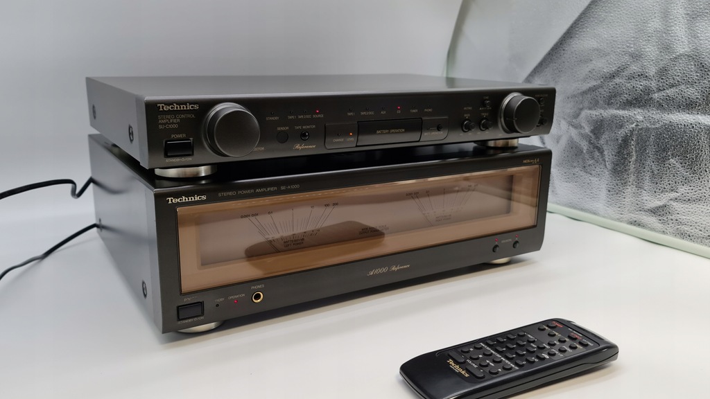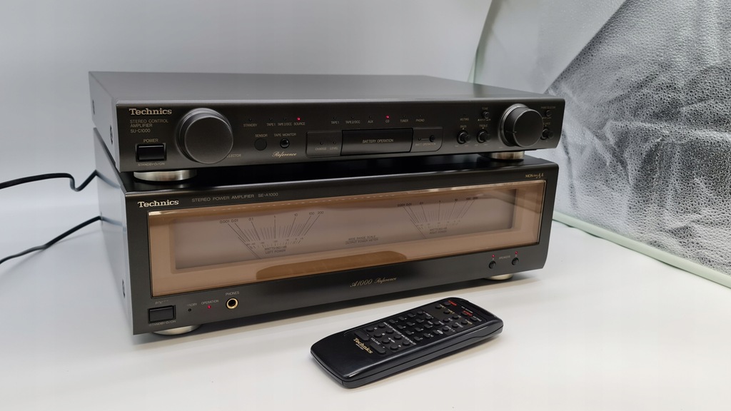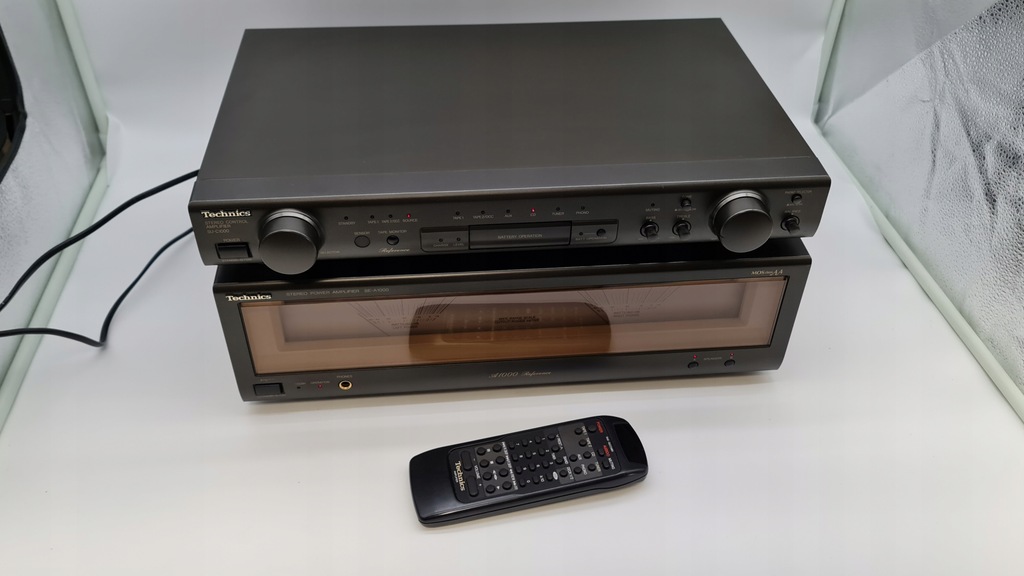 Mam dziś na sprzedaż unikatowy wzmacniacz Technics SU-C1000+SE-A1000 wersja MARK 2 Podświetlenie końcówki mocy w pełni sprawne. Selector żródeł w przedwzmacniaczu działa idealnie.W zestawie ze wzmacniaczem jest oryginalny pilot oraz okablowanie.