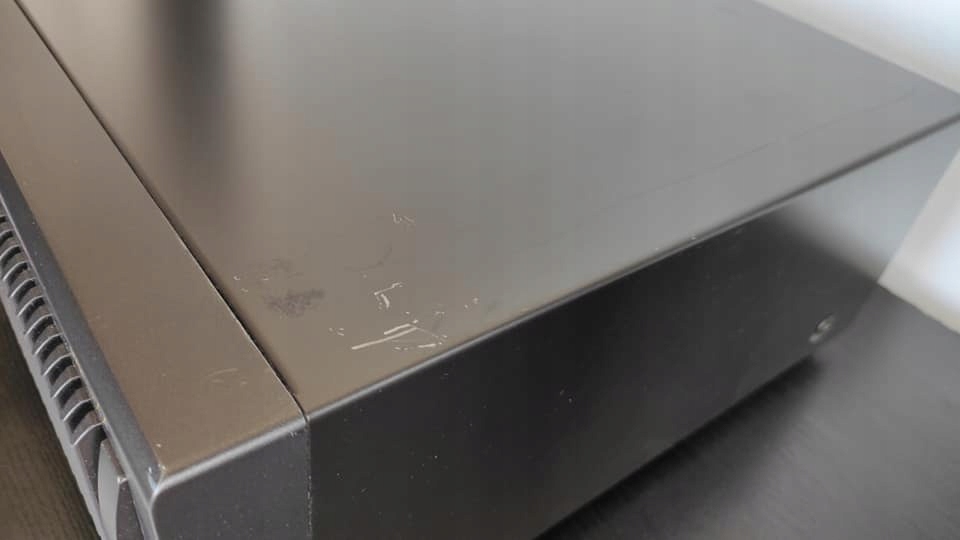 Niska cena, przez wzgląd na zamiennik pilota i kilka rys na obudowie, oraz brak jednej gumki nóżki. Na kontrolerze widoczne są ślady po gumkach nóżek innego klocka (pewnie da się zdrapać).