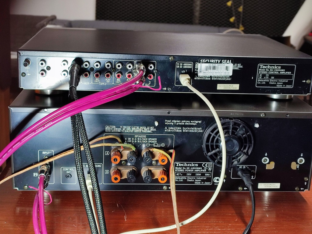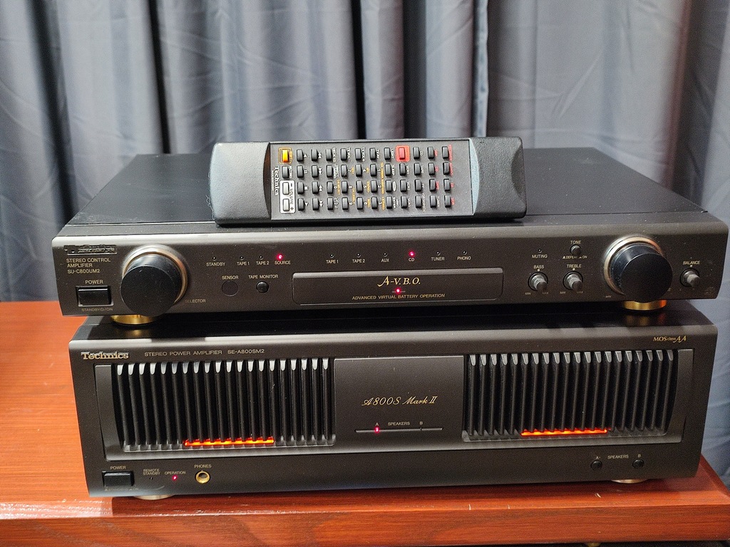 Technics SU-C800UM2 SE-A800SM2 przedwzmacniacz + końcówka mocy , ulepszona wersja poprzednika Se-A800S / Su c800U . Sprzęt w pełni sprawy po przeglądzie. W zestawie specjalny zasilający biały kabel łączący przeamp z końcówką. Dokładam pilot zamiennik / bez klapki zakrywającej baterie/ ale obsługuje zestaw. Końcówka posiada na obudowie ryski od stawiania na niej innych przedmiotów oraz widoczną rysę z lewego boku / to nie panel tylko obudowa , więc jak komuś przeszkadza to łatwo odmalować/. Różowy kabel RCA nie jest przedmiotem tej aukcji.