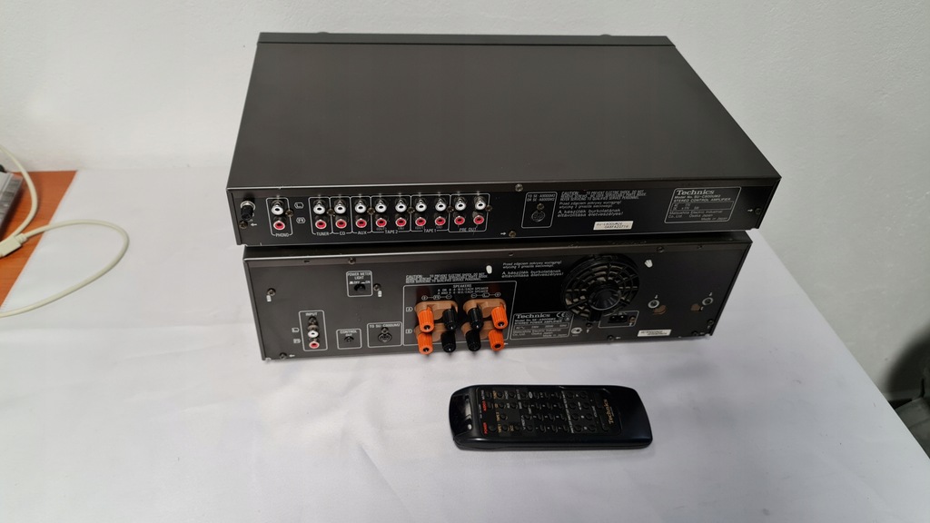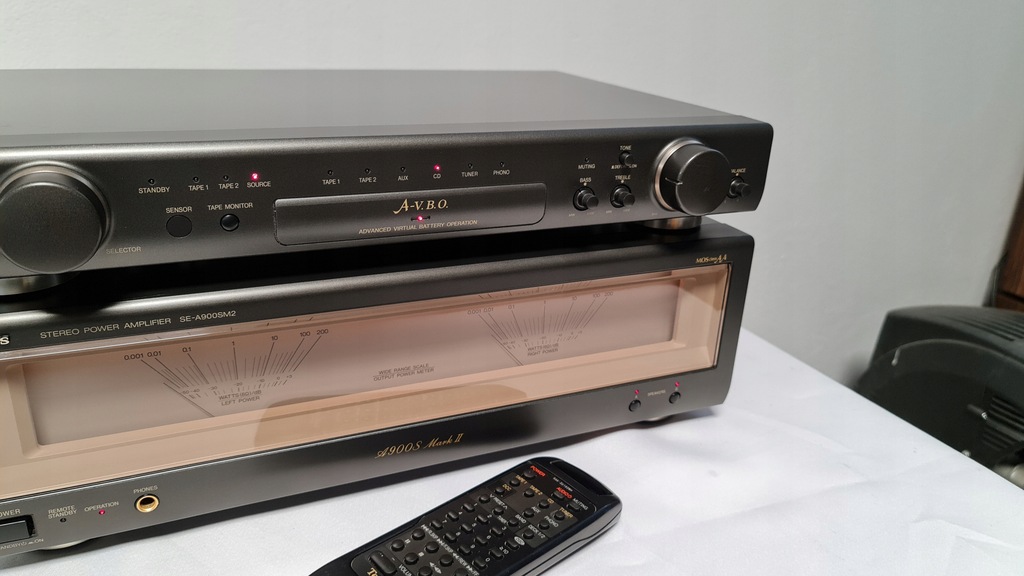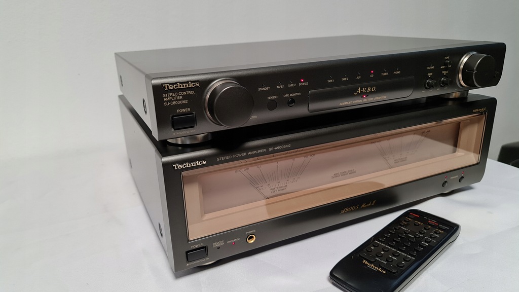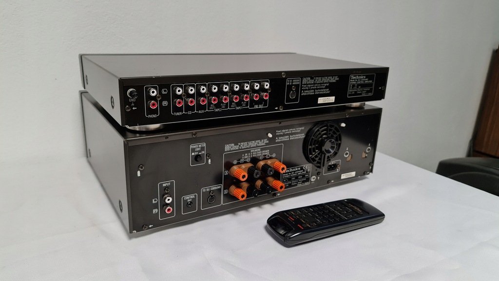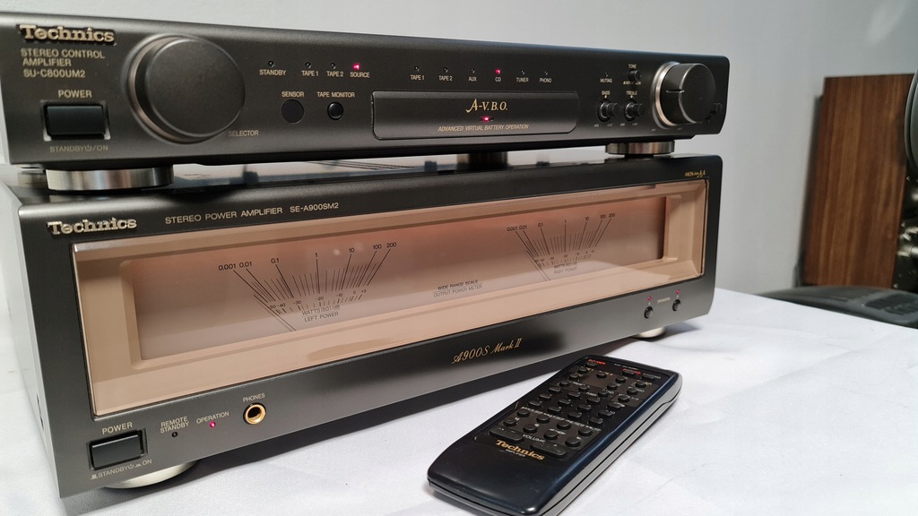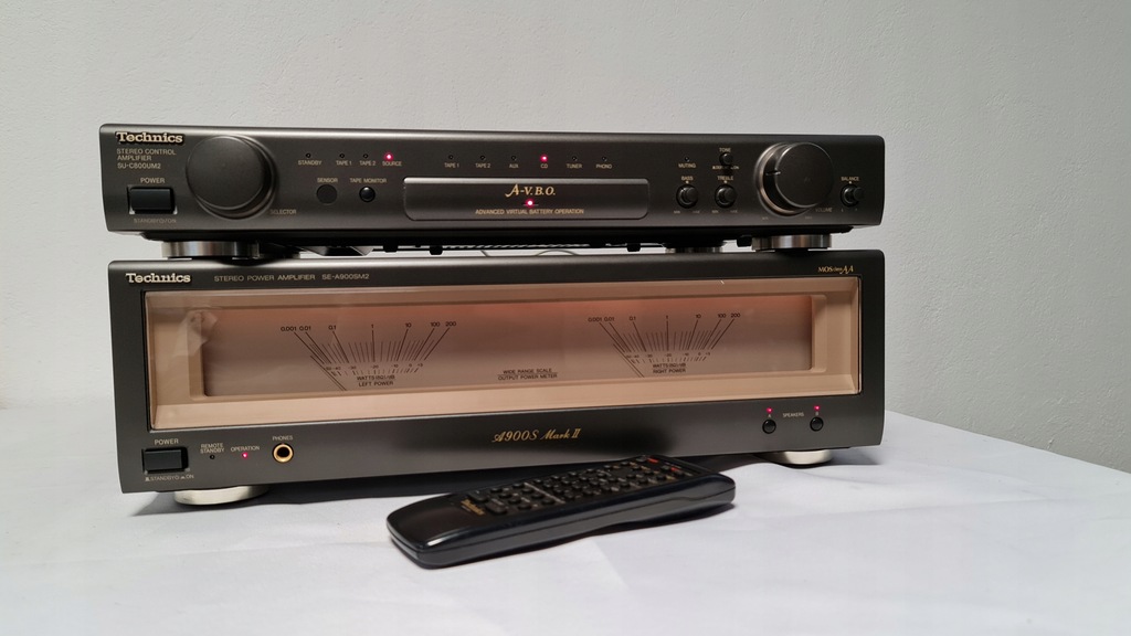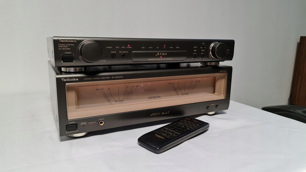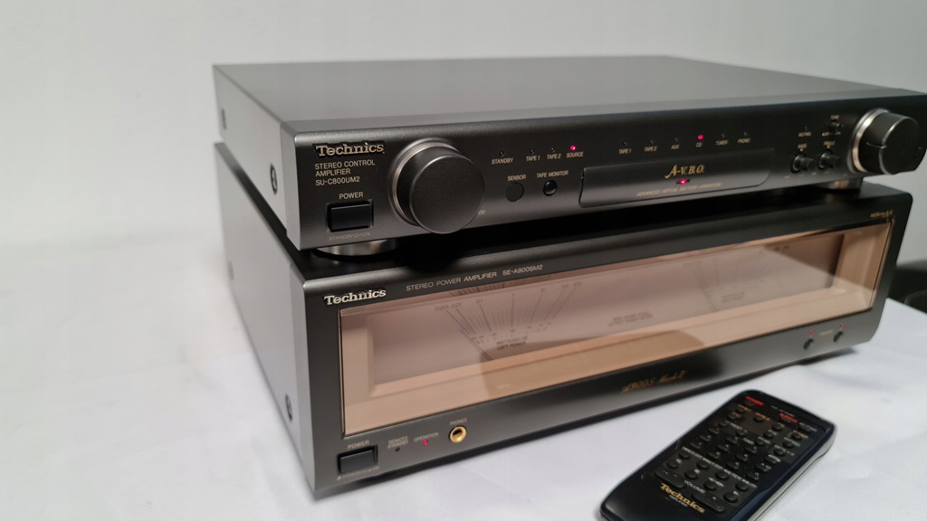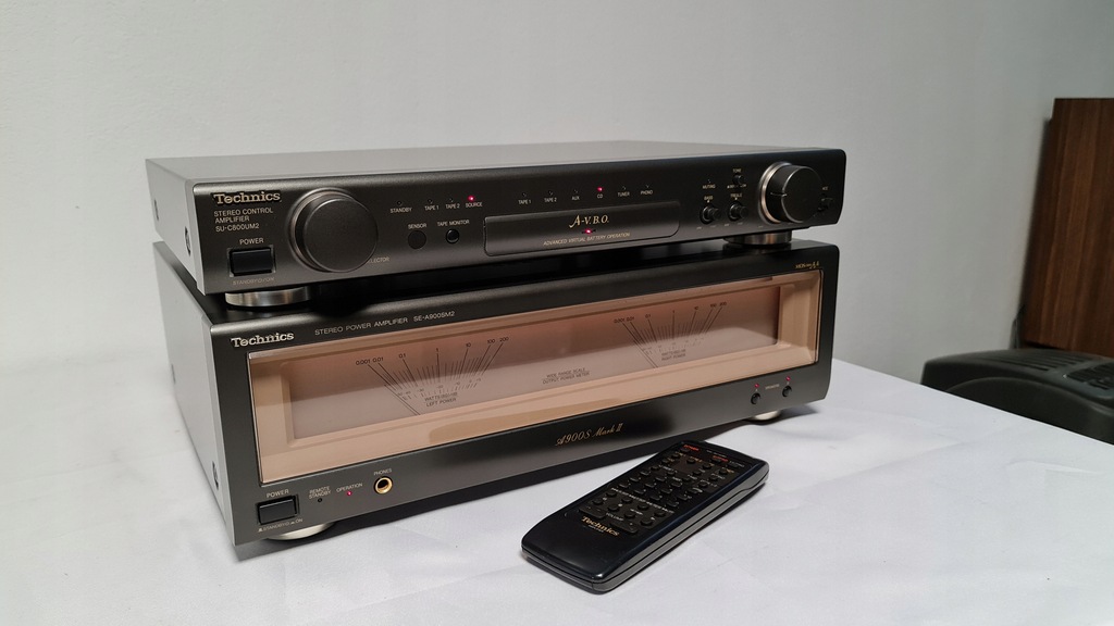 Mam dziś na sprzedaż wzmacniacz Technics SU-C800UM2 + SE-A900SM2 Wersja mark 2. Sprzęt 100% sprawny technicznie. Posiada możliwość wyłączanego podświetlania końcówki mocy oraz podpięcia drugiej końcówki mocy do przedwzmacniacza. W zestawie jest oryginalny pilot oraz całe okablowanie potrzebne do działania wzmacniacza. Selector przełączania żródeł dzwięku został profesjonalnie przeserwisowany.