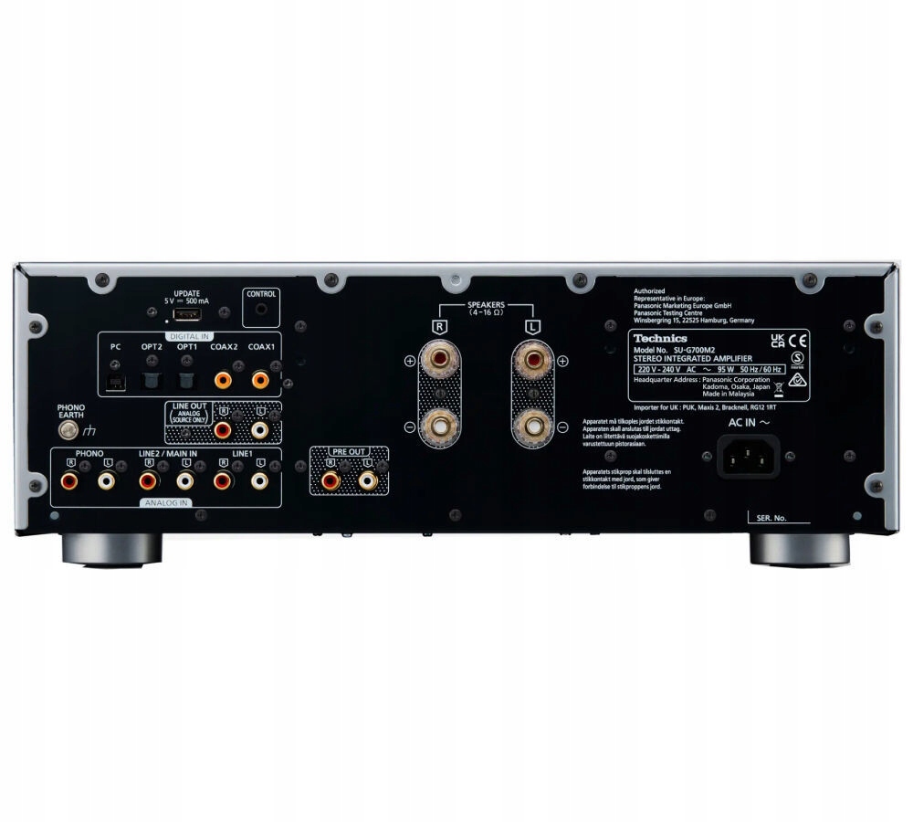 Mechanizm JENO (eliminacja zniekształceń typu jitter i optymalizacja kształtowania charakterystyki szumów)W celu zapewnienia bezstratnego, wiernego przekazu dużej ilości danych audio zawartej w sygnale płynącym do kolumn głośnikowych, w sekcji wzmacniacza mocy SU-G700M2 zastosowano w pełni cyfrowy układ wzmacniający, w tym mechanizm JENO realizujący koncepcje projektowe referencyjnych systemów marki Technics. W celu rozwiązania problemu związanego z degradacją jakości dźwięku powodowaną przez zniekształcenia typu jitter, co często stanowi problem w konwencjonalnych wzmacniaczach cyfrowych, model SU-G700 wyposażono w oryginalne obwody do redukcji tego typu zniekształceń, eliminujące je w całym słyszalnym paśmie akustycznym.