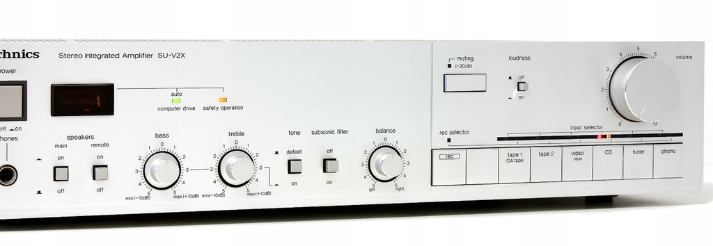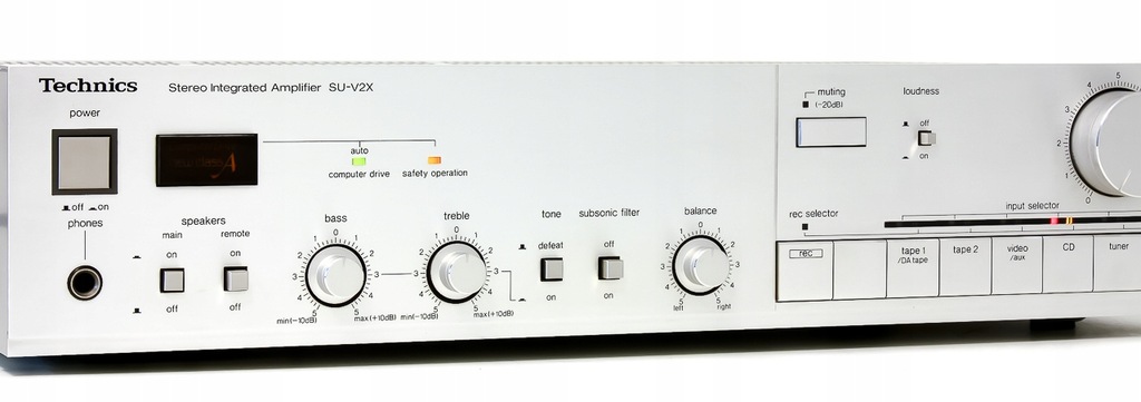 Rozbudowany model z zabezpieczeniem termicznym końcówki mocy oraz kontrolą napięcia układu wzmacniającego. Wyprodukowany w Japonii. Duża moc - pobór mocy z sieci to aż 295Watt co daje prawdziwe 2x50W przy 8Ohm mocy znamionowej! Dzięki budowie w klasie A i całkowitym poborze mocy 295W oraz kondensatorom aż 2 x 8200 mikroFaradów, wielkiemu trafo wzmacniacz jest bardzo stabilny, dźwięk jaki słyszymy w kolumnach nie jest zniekształcony a tony niskie są czyste niemalże do samego końca skali volume, można śmiało podłączyć naprawdę dużej mocy kolumny! Wzmacniacz ma doskonałe zabezpieczenia zapobiegające zniszczeniu wzmacniacza, posiada czujnik termiczny podczepiony do radiatora zapobiegający przegrzaniu sie końcówki mocy oraz automatyczną diagnostykę napięć w całym układzie wykonywaną po uruchomieniu wzmacniacza, załączenie zielonej diody Computer Drive oraz pomarańczowej Safety Operation synalizuje w 100% prawidłową pracę wzmacniacza. Polecam!