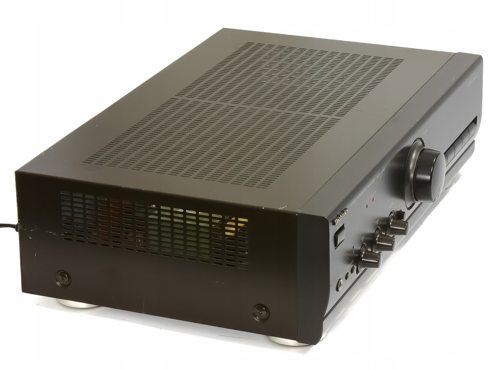 Wzmacniacz z ostatniej linii Technicsa produkcji japońskiej, posiada możliwość podłączenia 2 par kolumn, para A lub B (4-16Ohm) bądź A+B (8-16Ohm). Posiada regulację bass, treble, balans, funkcję całkowitego pominięcia - odłączenia regulacji bass oraz treble (ON/OFF Tone), Tape Monitor (Tape1/DAT, Tape2/DCC), załączenie/odłączanie par kolumn A i B (np. gdy chcemy słuchać muzyki tylko na słuchawkach). Posiada wejścia na 6 urządzeń oraz gniazdo słuchawkowe, obsługa wzmacniacza za pomocą tzw. miekkich klawiszy, wzmacniacz posiada aktywne chłodzenie - posiada wentylator którego obroty wzrastają wraz z poborem mocy, oznacza to iż przy cichym słuchaniu muzyki wentylator jest niesłyszalny! Dźwięk z tego wzmacniacza jest klarowny i szczegółowy dzięki zastosowanej zintegrowanej końcówce mocy wykonanej w klasie A. Wzmacniacz to prawdziwy japończyk (zbudowany całkowicie na japońskich podzespołach) jakich dziś się już nie produkuje.