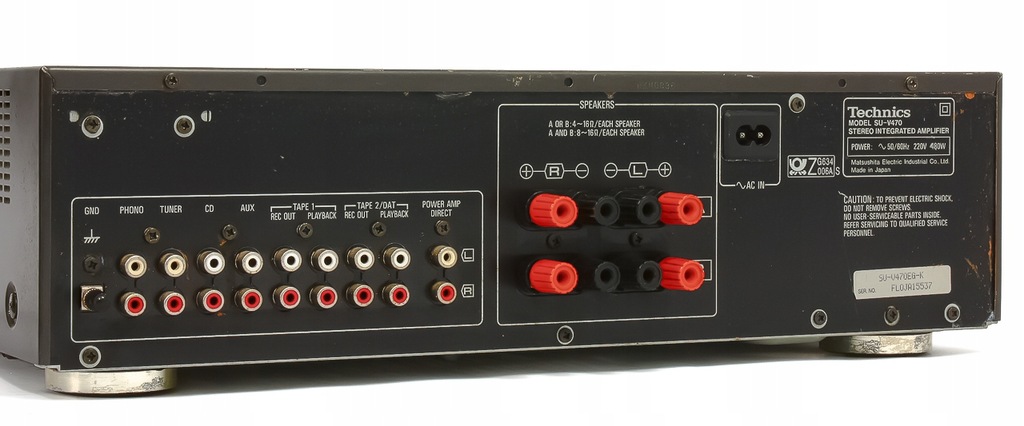 Wzmacniacz ten jest jednym z najmocniejszych stworzonych przez Technics'a pracujący w klasie AA, jego pobór mocy to aż 480 watt!! Dzięki budowie w klasie AA i całkowitym poborze mocy 480W oraz kondensatorom 2 x 8200 mikroFaradów, wielkiemu trafo wzmacniacz jest bardzo stabilny, dźwięk jaki słyszymy w kolumnach nie jest zniekształcony a tony niskie są czyste aż do samego końca skali volume, można śmiało podłączyć naprawdę potężnej mocy kolumny, ja nie mogę słuchać powyżej 4 w skali na 10 na kolumnach Tonsil Perfect o mocy znamionowej 120W. Wzmacniacz to prawdziwy japończyk (na japońskich podzespołach) jakich dziś się już nie produkuje!