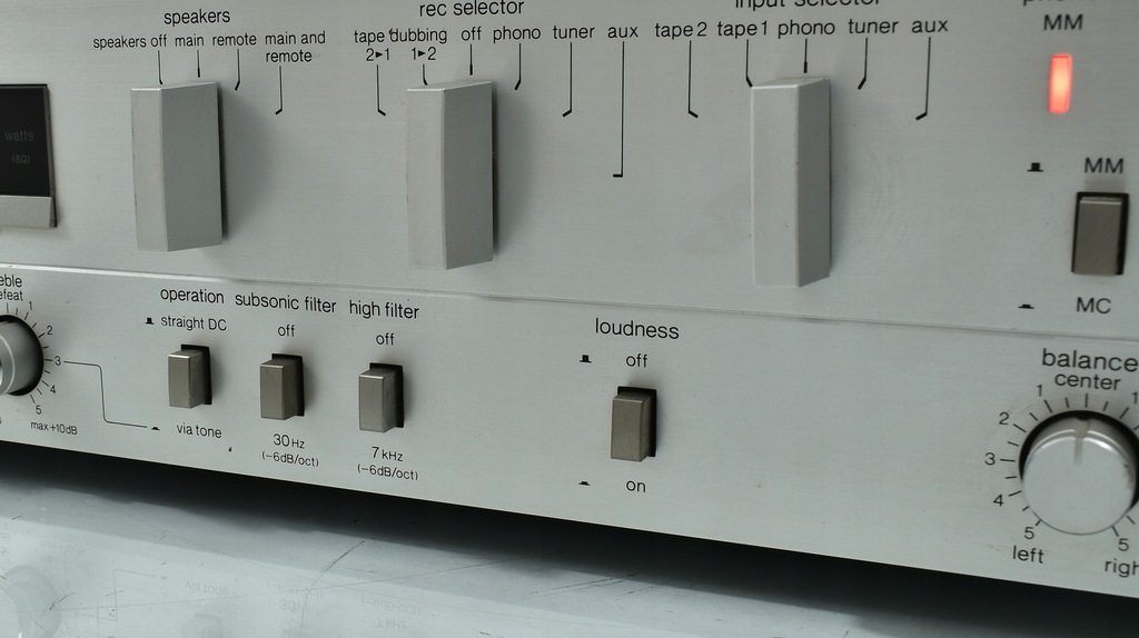 INPUTS: TAPE 2 ; TAPE 1 ; PHONO ; TUNER ; AUX,