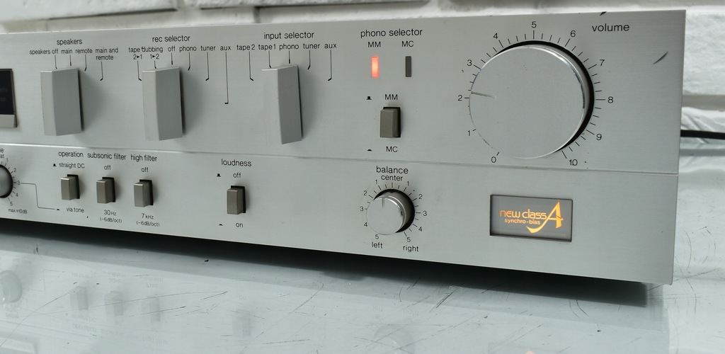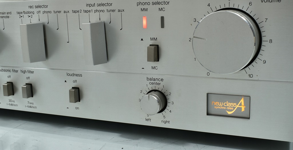 Wzmacniacz ten jest jednym z najmocniejszych stworzonych przez Technics'a pracujący w klasie A, jego pobór mocy to aż 515 watt!! Dzięki budowie w klasie A i całkowitym poborze mocy 515W oraz kondensatorom 2 x 8200 mikroFaradów, wielkiemu trafo wzmacniacz jest bardzo stabilny, dźwięk jaki słyszymy w kolumnach nie jest znikształcony a tony niskie są czyste aż do samego końca skali volume, można śmiało podłączyć naprawdę potężnej mocy kolumny, ja nie mogę słuchać powyżej 6 w skali na 10 na kolumnach Tonsil Perfect o mocy znamionowej 100W. Posiada możliwość podłączenia 2 par kolumn, para MAIN lub REMOTE (4-16Ohm) bądź MAIN+REMOTE (8-16Ohm). Posiada regulację bass, treble, balans, funkcję podbicia tonów Loudness, możliwość nagrywania z Decka 1 na 2 lub z Decka 2 na 1 (Tape1, Tape2), załączenie/odłączanie par kolumn Main i Remote (np. gdy chcemy słuchać muzyki tylko na słuchawkach). Posiada wejścia na 5 urządzeń, gniazdo słuchawkowe, bardzo ładny, świecący na niebiesko fluorosencyjny wskaźnik wysterowania mocy (wyjściowej) stereo, logo NEW CLASS A widoczne na panelu jest podświetlane co daje ładny efekt w ciemnościach. Wzmacniacz to prawdziwy japończyk (na japońskich podzespołach) jakich dziś się już nie produkuje!
