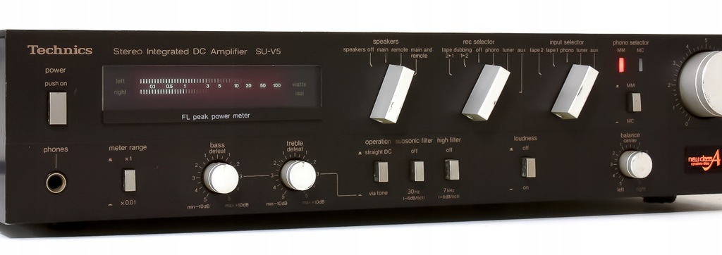 Wzmacniacz ten jest jednym z najmocniejszych stworzonych przez Technics'a pracujący w klasie A, jego pobór mocy to aż 515 watt!! Dzięki budowie w klasie A i całkowitym poborze mocy 515W oraz kondensatorom 2 x 8200 mikroFaradów, wielkiemu trafo wzmacniacz jest bardzo stabilny, dźwięk jaki słyszymy w kolumnach nie jest znikształcony a tony niskie są czyste aż do samego końca skali volume, można śmiało podłączyć naprawdę potężnej mocy kolumny, ja nie mogę słuchać powyżej 6 w skali na 10 na kolumnach Tonsil Perfect o mocy znamionowej 100W. Posiada możliwość podłączenia 2 par kolumn, para MAIN lub REMOTE (4-16Ohm) bądź MAIN+REMOTE (8-16Ohm). Posiada regulację bass, treble, balans, funkcję podbicia tonów Loudness, możliwość nagrywania z Decka 1 na 2 lub z Decka 2 na 1 (Tape1, Tape2), załączenie/odłączanie par kolumn Main i Remote (np. gdy chcemy słuchać muzyki tylko na słuchawkach). Posiada wejścia na 5 urządzeń, gniazdo słuchawkowe, bardzo ładny, świecący na niebiesko fluorosencyjny wskaźnik wysterowania mocy (wyjściowej) stereo, logo NEW CLASS A widoczne na panelu jest podświetlane co daje ładny efekt w ciemnościach. Wzmacniacz to prawdziwy japończyk (na japońskich podzespołach) jakich dziś się już nie produkuje!