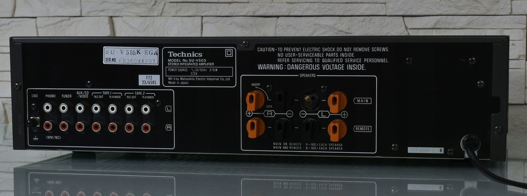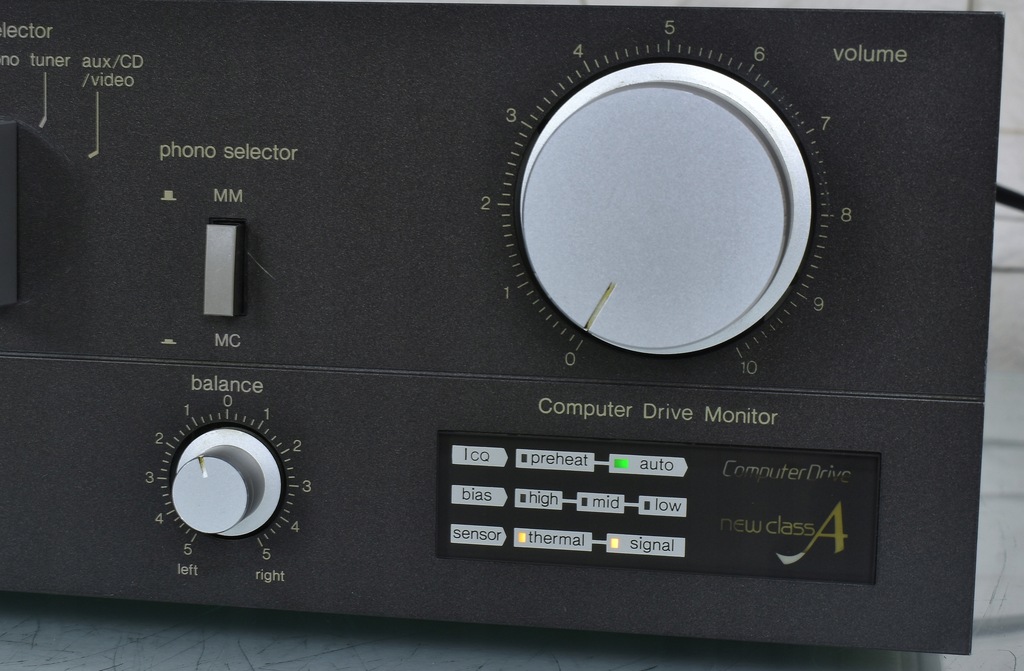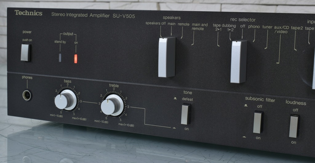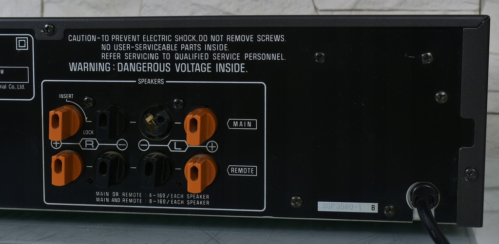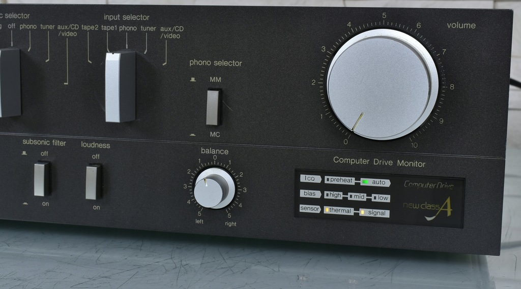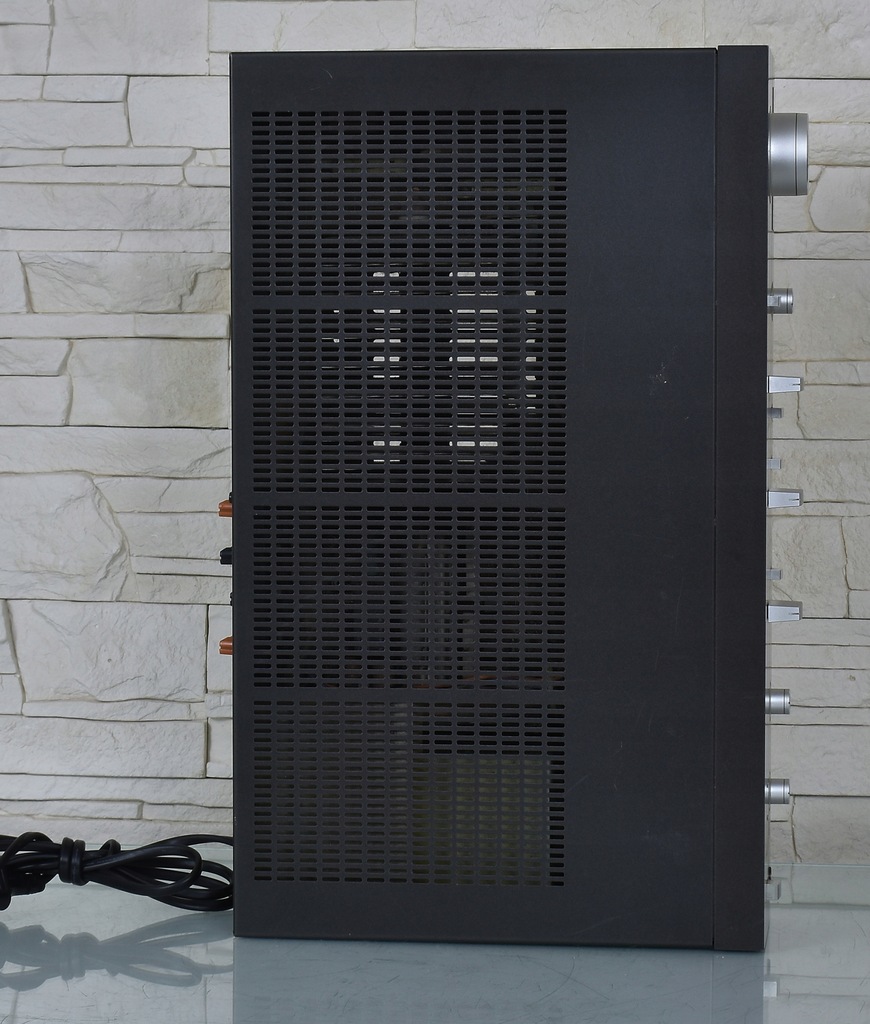 Wzmacniacz posiada bardzo dużą moc wyjściową, jego max pobór mocy z sieci to aż 370 Watt co daje około 2 x 120Watt max! Dzięki swej budowie w klasie A i całkowitym poborze mocy 370Watt oraz kondensatorom 2 x 8200 mikroFaradów (zapewniają duży zapas napięcia podczas mocnego uderzenia basu), wielkiemu trafo wzmacniacz jest bardzo stabilny, dźwięk jaki słyszymy w kolumnach nie jest zniekształcony a generowany bas jest mocny (nie charczący jak w słabych wzmacniaczach) niemalże do samego końca skali volume, można śmiało podłączyć naprawdę dużej mocy kolumny! Wzmacniacz posiada możliwość podłączenia 2 par kolumn, para MAIN lub REMOTE (4-16Ohm) bądź MAIN+REMOTE (8-16Ohm) - z tyłu znajduje się przełącznik impedancji. Posiada regulację bass, treble, balans, funkcję podbicia tonów Loudness która to znacznie uwydatnia przede wszystkim tony niskie, możliwość nagrywania z Decka 1 na 2 lub z Decka 2 na 1 (Tape1, Tape2), załączenie/odłączanie par kolumn Main i Remote (np. gdy chcemy słuchać muzyki tylko na słuchawkach). Posiada wejścia na 5 segmentów, istnieje możliwość podłączenia korektora graficznego do TAPE1, gniazdo słuchawkowe. Wyjścia (końcówki mocy) zabezpieczone są przekaźnikami, gdy przełączamy pary MAIN, REMOTE przełącza się przekaźnik, wzmacniacz posiada również zabezpieczenie termiczne (gdyby radiator się przegrzał wzmacniacz samoczynnie się wyłączy) oraz kontrolę napięcia w układzie (po włączeniu zasilania układ sprawdza napięcie i gdy wszystko jest OK załącza końcówki mocy). Wzmacniacz to prawdziwy japończyk (zbudowany całkowicie na japońskich podzespołach) jakich dziś się już nie produkuje dlatego będzie jeszcze długo i bezawaryjnie służył swojemu właścicielowi!