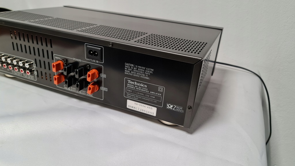 Mam dziś na sprzedaż bardzo dobry i sprawdzony wzmacniacz Technics SU-V55A. Japońska solidna konstrukcja o bardzo ładnym brzmieniu. Wzmacniacz w super stanie wizualnym jak na swój wiek, technicznie 100% sprawny. W zestawie kabel zasilający.
