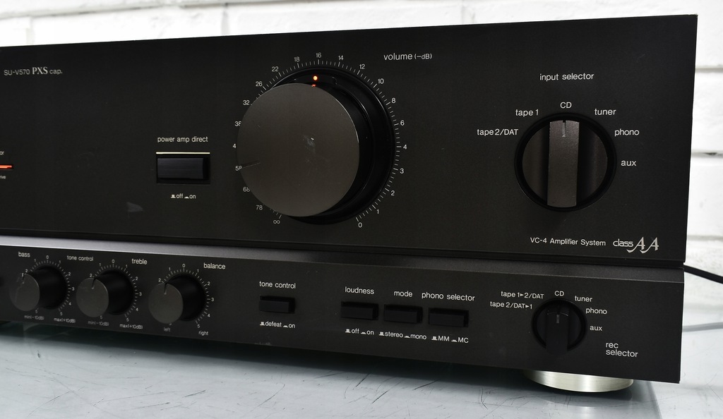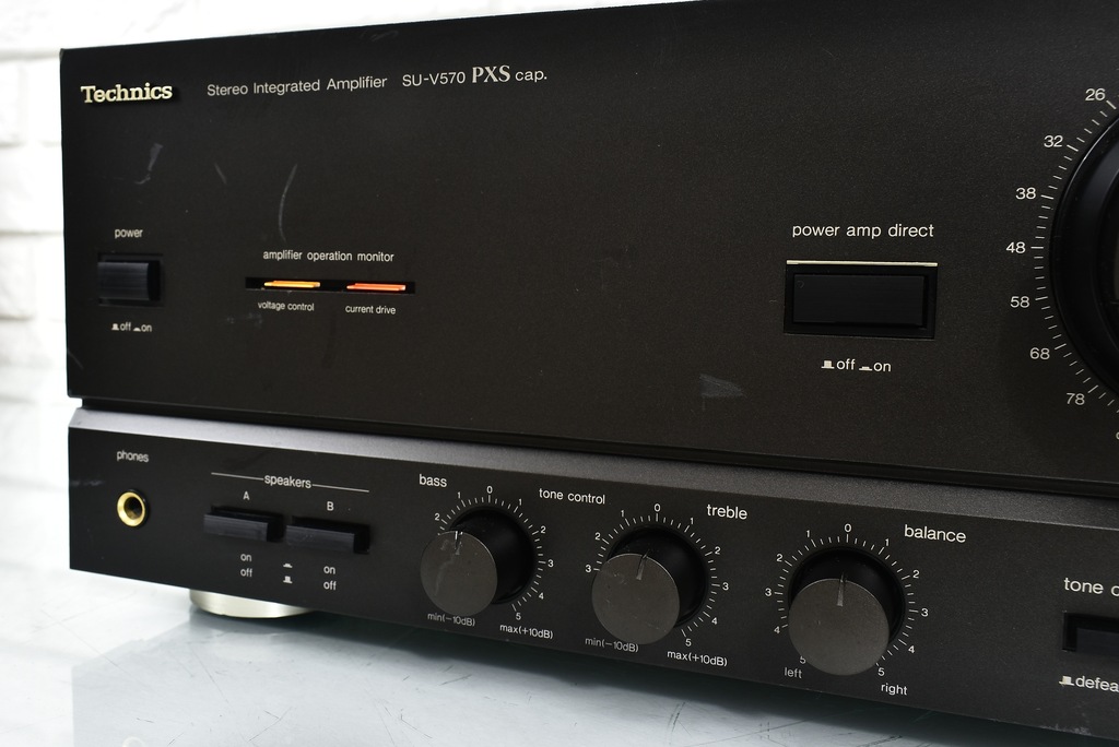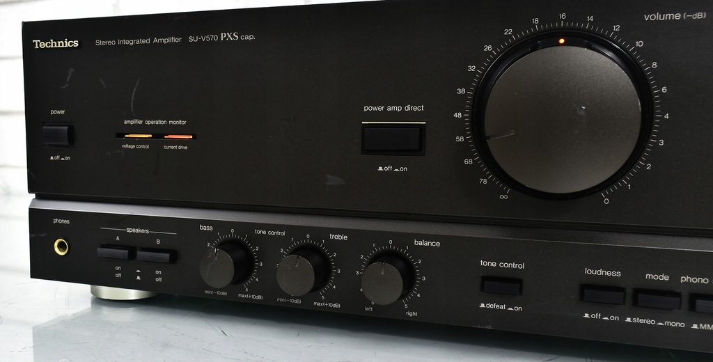 Przedstawiciel starej dobrej szkoły Technics`a, monstrualny „kanciak” pochodzący z jednej z najlepszych linii tej marki. Porównywanie oferowanego tu SU-V570 do przedstawicieli dwóch ostatnich serii produktów (nawet tych dzielonych: końcówka mocy – przedwzmacniacz) Technics`a to wręcz profanacja – zapraszam na konfrontację, można się przekonać… Brzmienie – rewelacja – w dobie obecnie produkowanych wzmacniaczy budżetowych, należałoby nadać mu miano audiofilskiego. Moim zdaniem parametry jakie oferuje SU-V570 powinny stanowić standard dla obecnych sklepowych produktów w przedziale 1500-2000zł, niestety z przyczyn marketingowych jest to niemożliwe (zresztą od wielu już lat). Urządzenie wykonane z wysokiej jakości, firmowych, trwałych komponentów , między innymi: potężna końcówka mocy klasy AA (+ świetne zabezpieczenia chroniące ją przed zwarciami, sprzężeniami...), firmowany transformator Technics OFC (oxygen free copper, miedź beztlenowa), firmowane kondensatory Technics (Hi-Speed). Należy również wspomnieć o potencjometrach ALPS