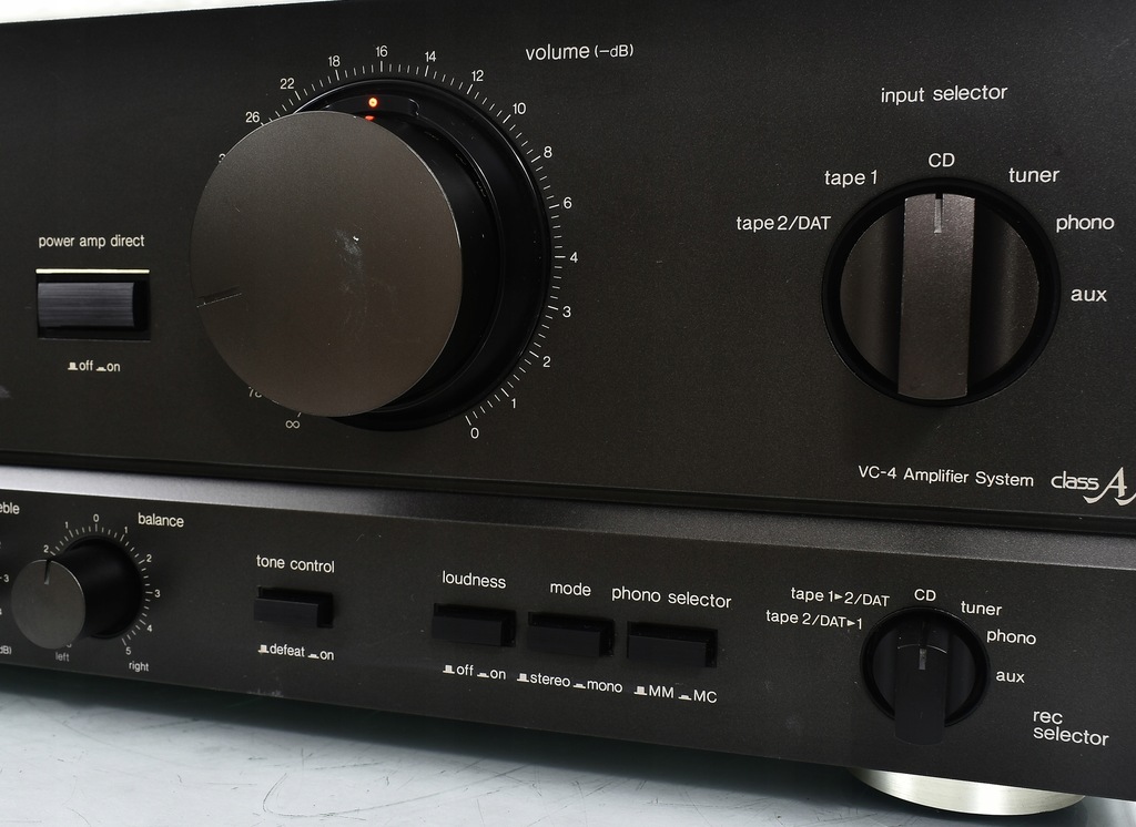 - 6 wejść audio: TAPE1 – TAPE2 – CD – TUNER – AUX – PHONO MM/MC