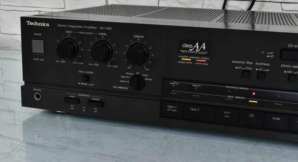 To jeden z mocniejszych wzmacniaczy jakie wypuściła firma Technics, oparty na 4 osobnych końcówkach mocy i jednej centralnej daje naprawdę potężne wzmocnienie 100W na każdy z 4 kanałów ,końcówka mocy chłodzona specjalnym płynem w miedzianych rurkach. Wzmacniacz ma trafo z miedzi beztlenowej OFC co znacznie zmniejsza szumy z sieci i optymalnie poprawia zarówno wzmocnienie jak i sam dźwięk, za czystość i dynamikę dźwięku odpowiadają 2 kondensatory High Speed E-X classAA które w znaczny sposób przyczyniły się do krystalicznego i niepowtarzalnego brzmienia tego wzmacniacza. Wzmacniacz ma doskonałą stereofonię bardzo przejrzystą scenę muzyczną, słychać na nim naprawdę wszystko ,może na innych wzmacniaczach czegoś nie da się usłyszeć ale tu jest całkiem inaczej poprostu rozpoznajemy każdy niuans z muzyki. Wzmacniacz może z łatwością przekazywać zarówno muzykę klasyczną jak i jazz, pop, dance lub techno, zaopatrując go w odpowiednie mocne kolumny można się cieszyć dźwiękiem każdego rodzaju muzyki. Wzmacniacz otrzymał wysokie noty w niemieckiej prasie fachowej zajmującej się testowaniem nowych produktów HIFIVision: Oberklasse *** ,AUDIO: Spitzenklasse*** ,StereoPlay: Mitteklasse,Referenz **** .....na taką ocenę trzeba zasłużyć i ten wzmacniacz w pełni tego dowiódł. Polecam serdecznie ten wzmacniacz wszystkim wyznawcą mocnego i czystego brzmienia