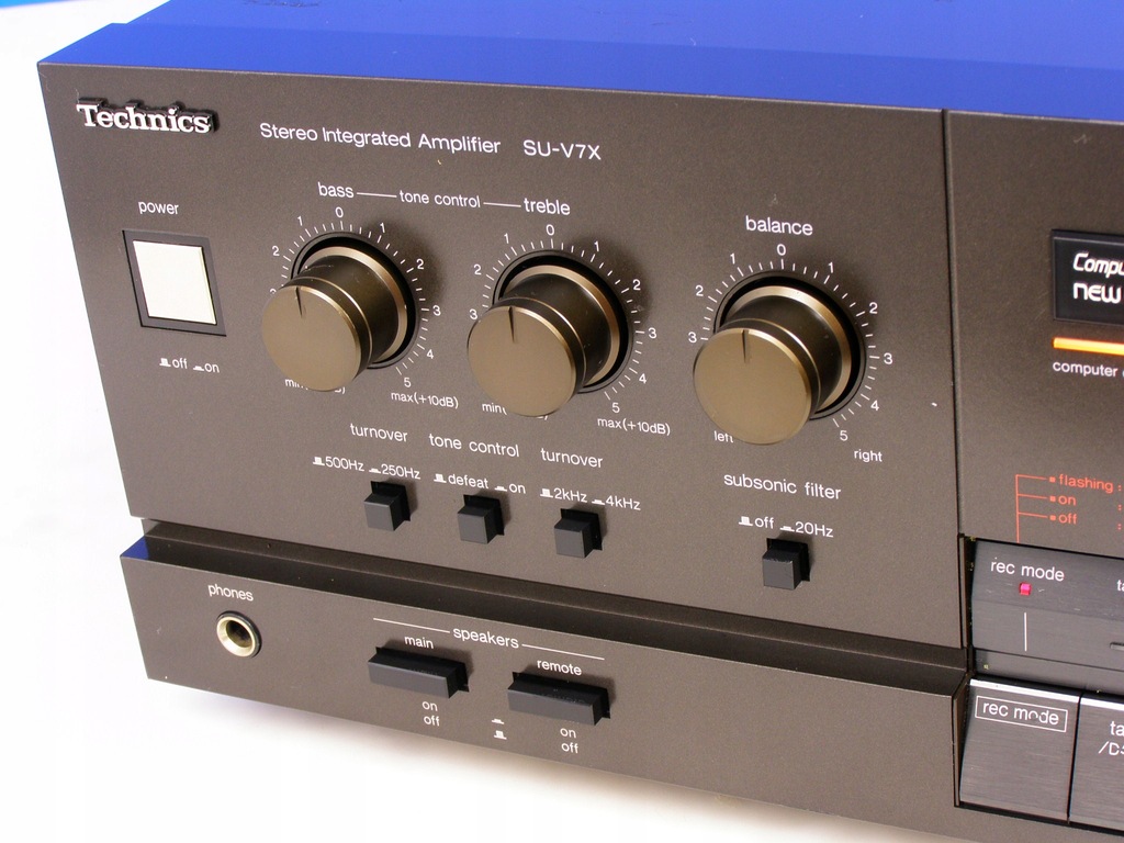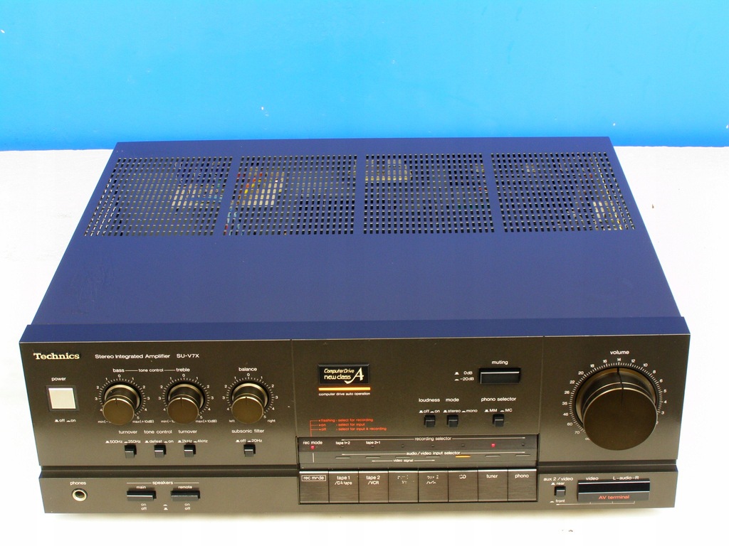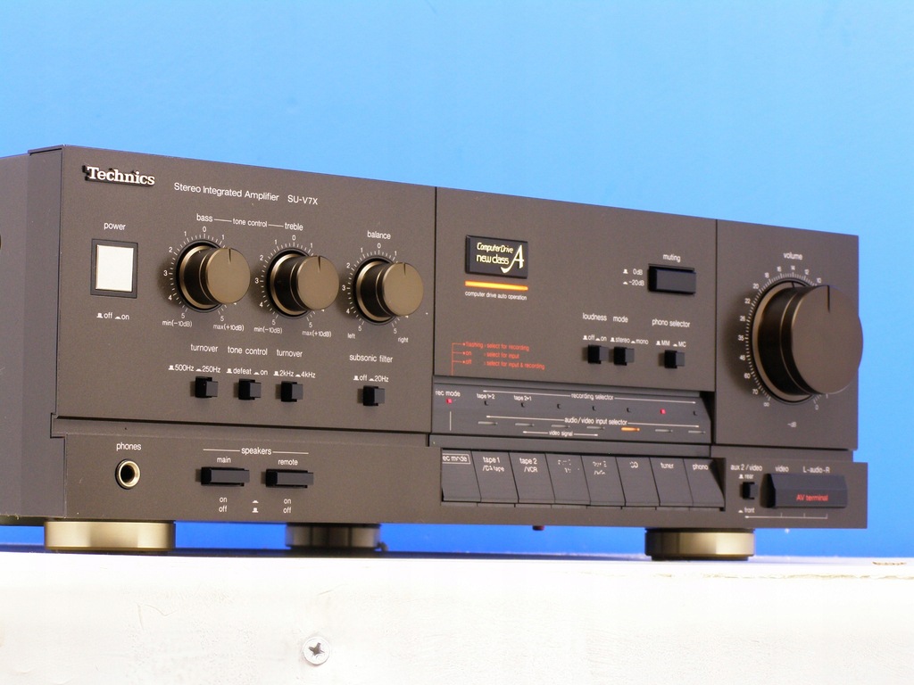 Klasyczne stereo o dużej mocy i ciepłym brzmieniu. KONSTRUKCJA W CAŁOŚCI TRANZYSTOROWA (toshiba1265), co w marce Technics bardzo rzadkie.