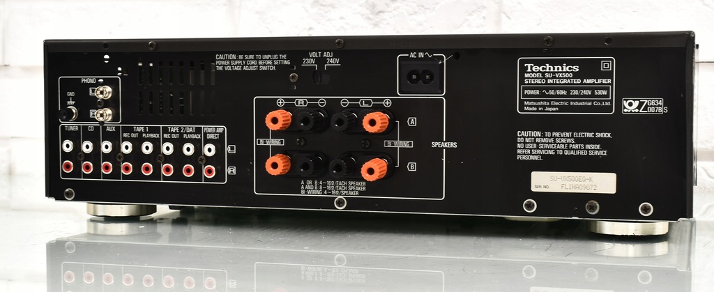 Seria SU-VX500 łączy w sobie jakość dźwięku i dużą moc wyjściową. Jeśli masz dobrej jakości kolumny i lubisz podkręcony potencjometr to jest to wznak dla ciebie. Sprzęt ten został wyprodukowany na początku lat 90-tych, czyli w okresie, gdy produkowany sprzęt audio był najwyższej klasy. Jego cena w 100% pokrywała koszt materiałów i wysokiej jakości wykonania, a nie reklamy. Wspaniale wzmacnia sygnał wychodzący na głośniki. To maszyna o niezwykłej sile, mająca rzeszę entuzjastów. Zachwyca nie tylko mocą, ale i niezwykle jasnym, dynamicznym brzmieniem. Tony są wyważone, naturalne, bas niesamowicie podbity, rzadko spotykana przestrzenność dźwięku.