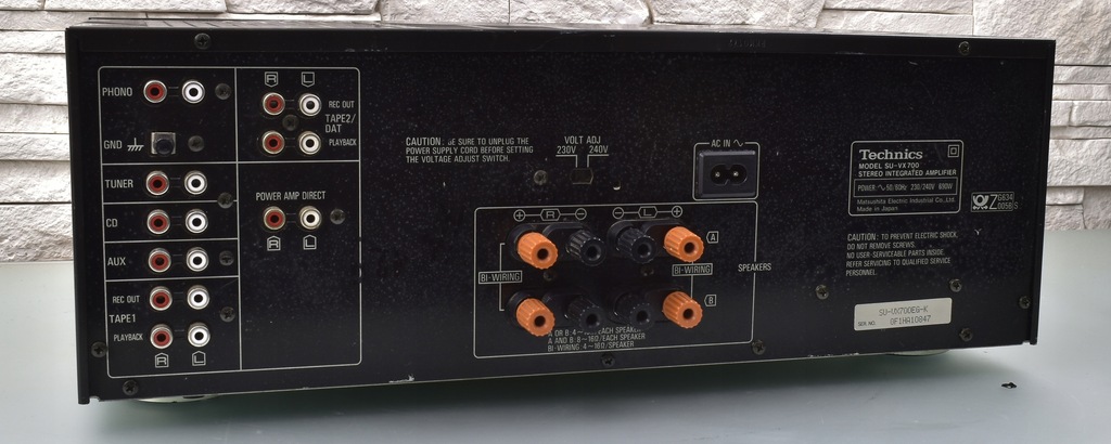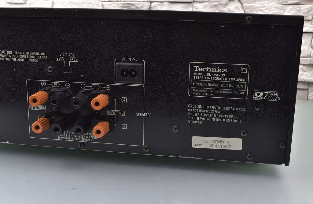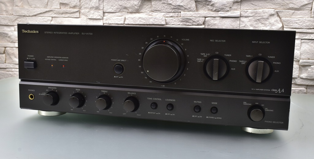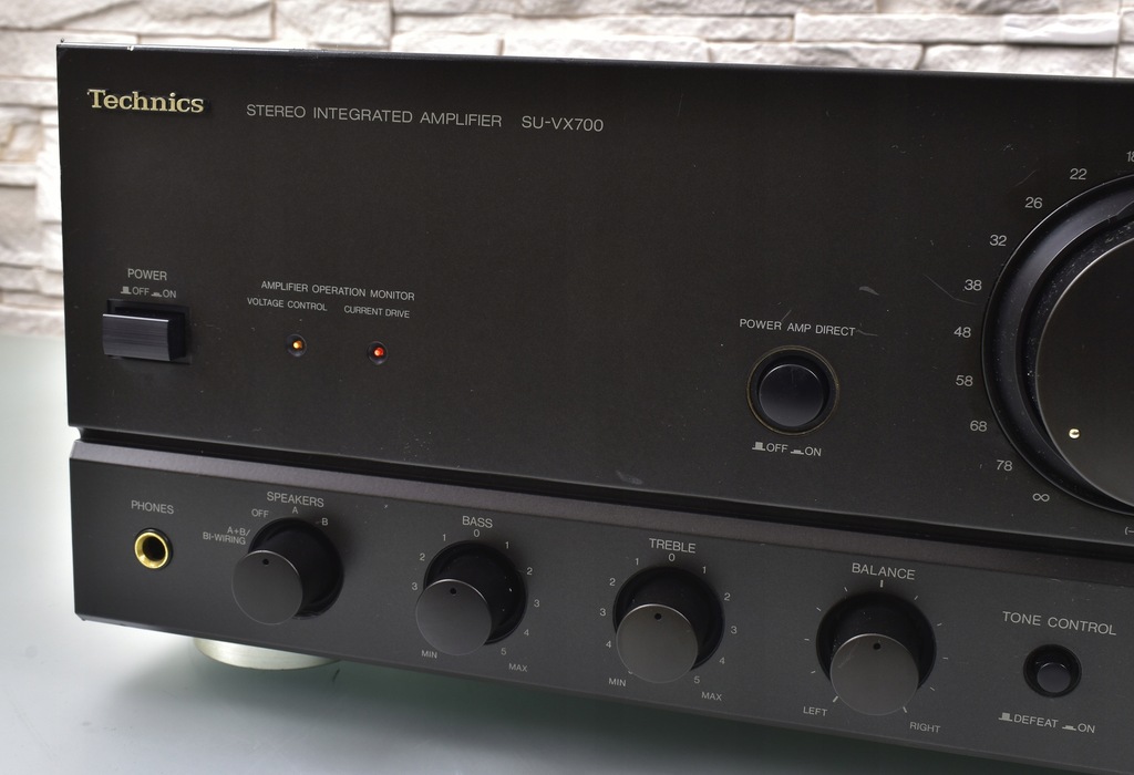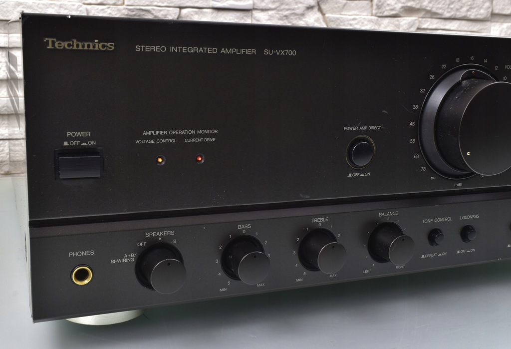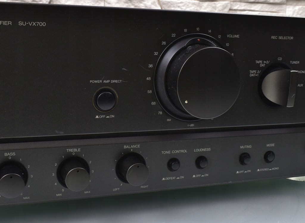 Wzmacniacz Technics SU-VX700 jest to jeden z najwyższych modeli Technicsa. Plasuje się na drugim miejscu, zaraz po SU-VX800. Charakteryzuje się czystym i dynamicznym dźwiękiem. Mocny, dobitny bass, wyraźne wysokie tony oraz zrównoważony środek pasma. Jest to wzmacniacz ceniony wśród znawców muzyki i sprzętu elektronicznego. Jest on "młodszym bratem" SU-VX800 - obydwa te modele pod względem jakości dźwięku przebijają konstrukcje dzielone takie ja np.SE-A800 czy SE-A900. Choć model pochodzi z lat dziewięćdziesiątych to dzisiejsze konstrukcje wyprzedza co najmniej o dwie klasy. Zbudowany na dwóch potężnym transformatorze z beztlenowej miedzi OFC oraz dwóch kondensatorach X-PRO class AA. Sprzęt wykonany został w Japonii - kolebce światowej elektroniki - w czasach świetności firmy Technics. Dysponuje on potężną mocą 100W na każdy kanał przy 8Ohm co czyni go jednym z najmocniejszych wzmacniaczy użytku domowego. Jest on w stanie zatem "napędzić" każde kolumny typu domowego . Technics SU-VX700 to 14kg prawdziwej Japońskiej elektroniki na najwyższym poziomie.