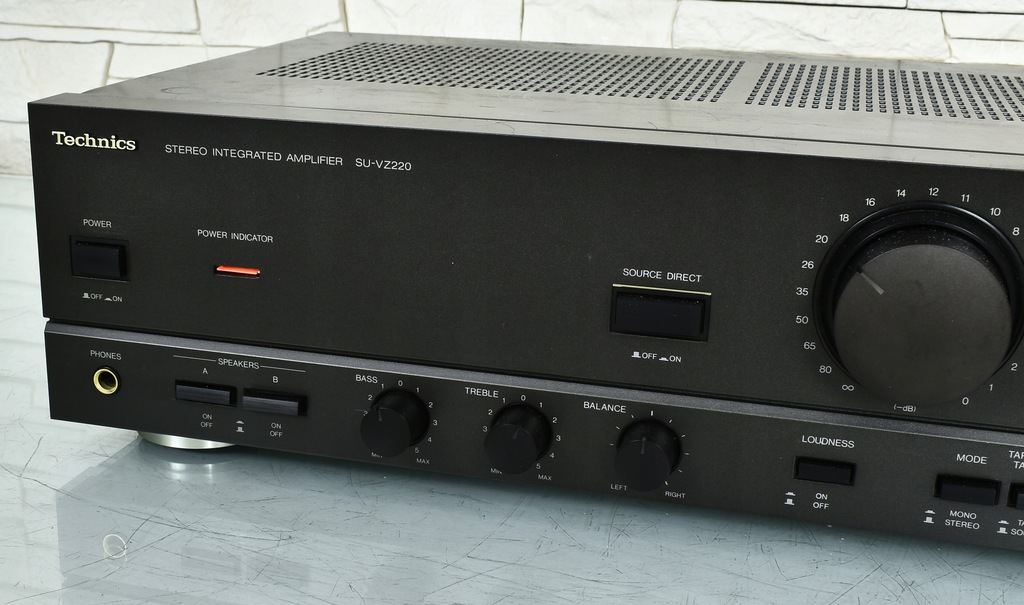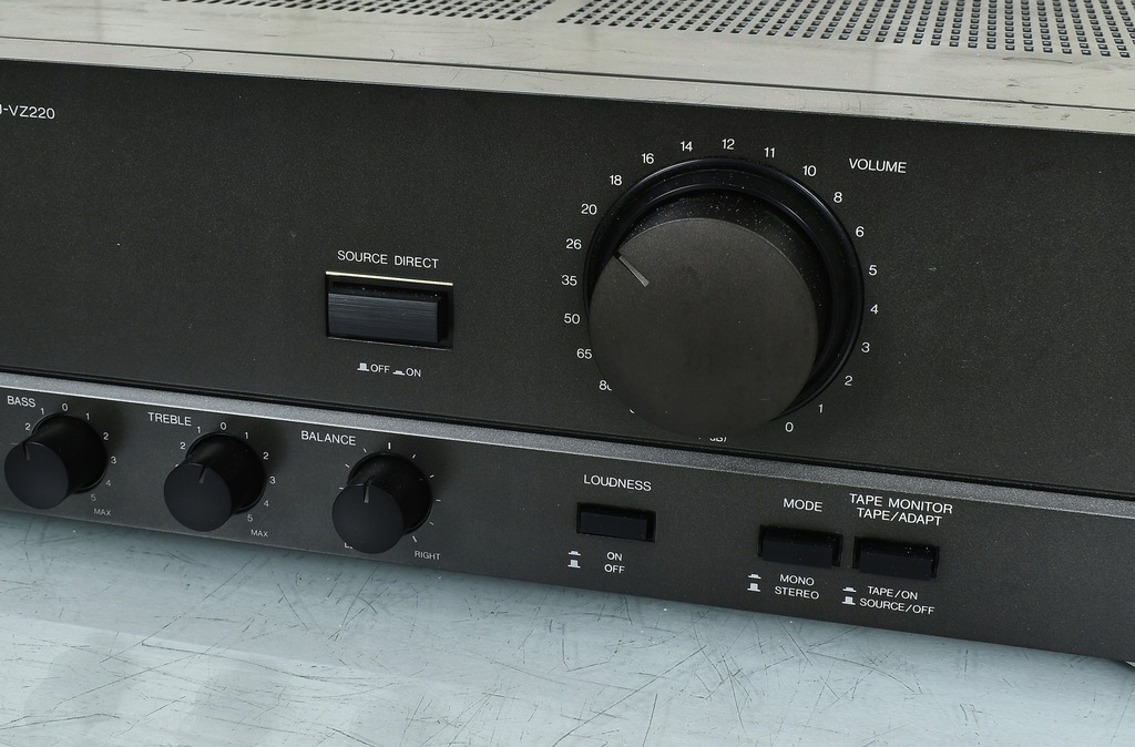 SU-VZ220 to doskonale brzmiący i bardzo mocny wzmacniacz pracujący w New Class A, ma doskonały dynamiczny bas i czysty sopran,można na nim słuchać wszystkich rodzajów muzyki,jego stereofonia to dokładne odzwierciedlenie pełnej sceny muzycznej z wszystkimi detalami, tu nic nie ujdzie uwadze słuchacza jednym słowem bardzo dobry wzmacniacz do słuchania muzyki i to bardzo głośno. To naprawdę super wzmacniacz o żywym i pełnym dźwięku, na fundamencie mocnego i sprężystego basu. Jego nieocenioną zaletą jest funkcja LOUDNESS - podbicie dynamiki, sprawia ona że dźwięk staje się potężniejszy i bogatszy w bas i soprany. Panel przedni wykonany z aluminium.