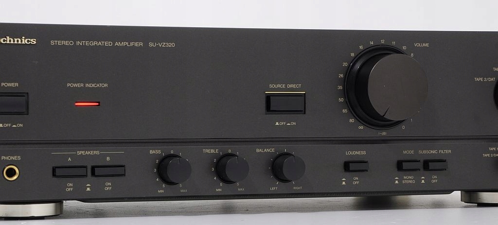SU-VZ320 to doskonale brzmiący i bardzo mocny wzmacniacz pracujący w New Class A, ma doskonały dynamiczny bas i czysty sopran, można na nim słuchać wszystkich rodzajów muzyki, jego stereofonia to dokładne odzwierciedlenie pełnej sceny muzycznej z wszystkimi detalami, tu nic nie ujdzie uwadze słuchacza jednym słowem bardzo dobry wzmacniacz do słuchania muzyki i to bardzo głośno. To naprawdę super wzmacniacz o żywym i pełnym dźwięku, na fundamencie mocnego i sprężystego basu. Jego nieocenioną zaletą jest funkcja LOUDNESS - podbicie dynamiki, sprawia ona że dźwięk staje się potężniejszy i bogatszy w bas i soprany. Panel przedni wykonany z aluminium.